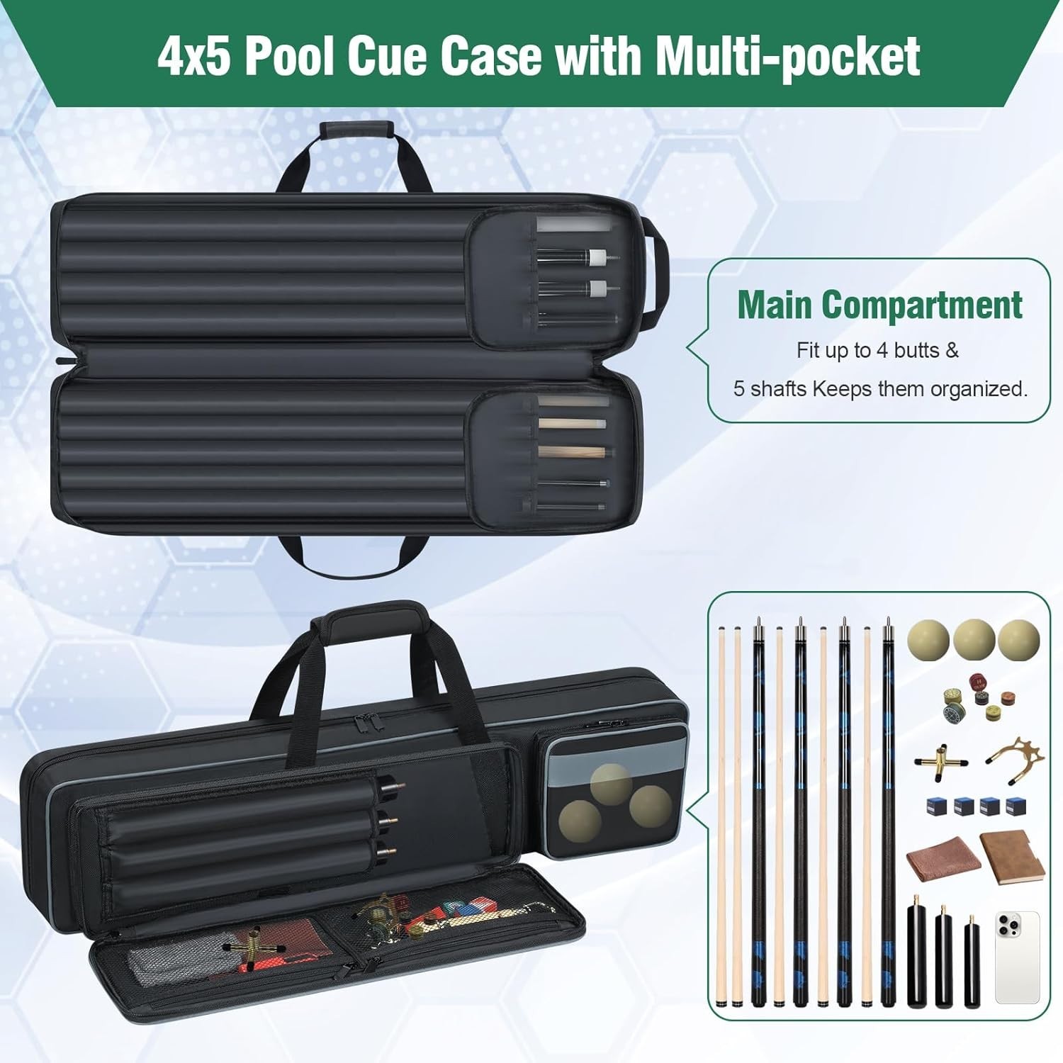 Pool Cue Case 4x5, Pool Cue Carrying Case Soft Padded Billiard Stick Bag with...