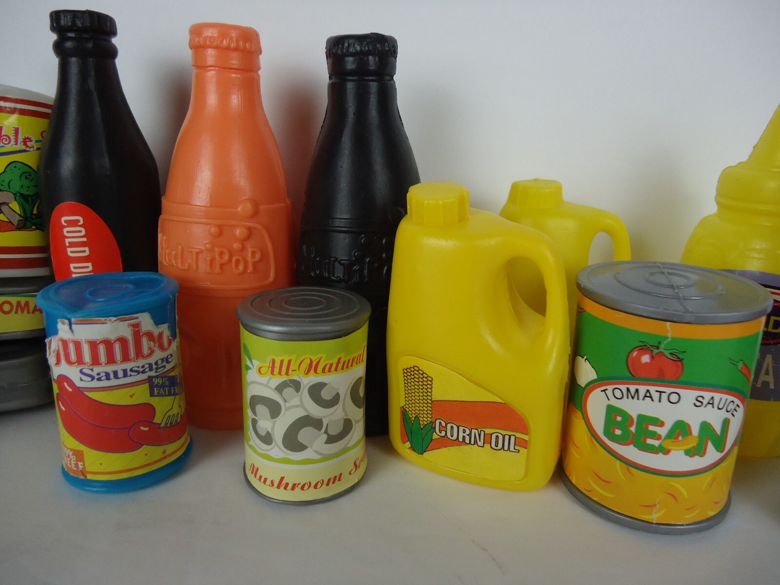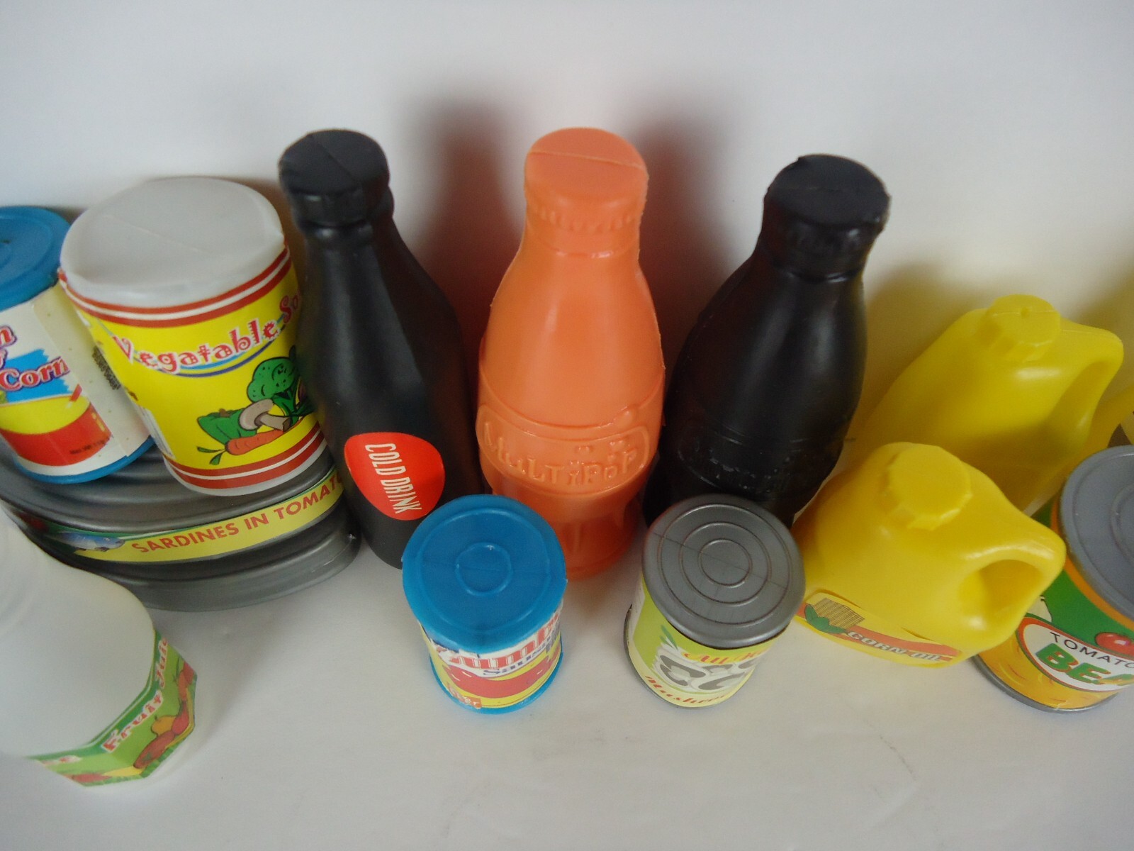 VTG Lot of 20 Pretend Play Food Containers Condiments, Sardines, Juice, Soda 80s