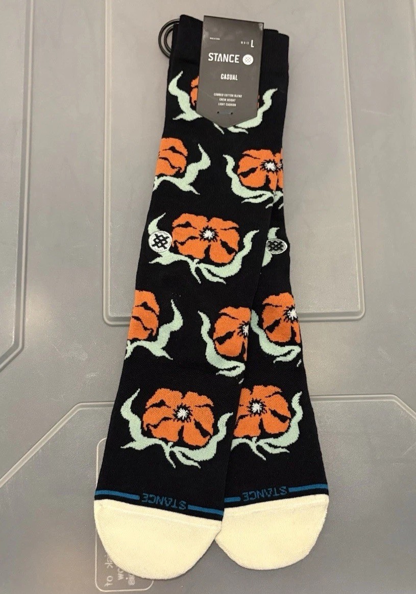 STANCE BROADCAST CREW SOCKS.NEW BLACK FLORAL PATTERN CUSHION SIZE L 9 - 13