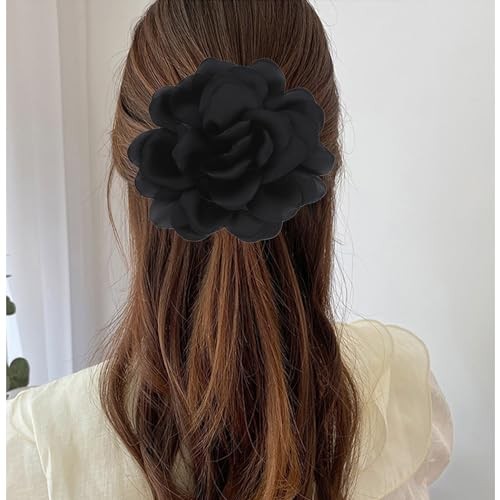 Flower Brooches Lapel Pins for Women Satin Fabric Brooches Big Camellia black