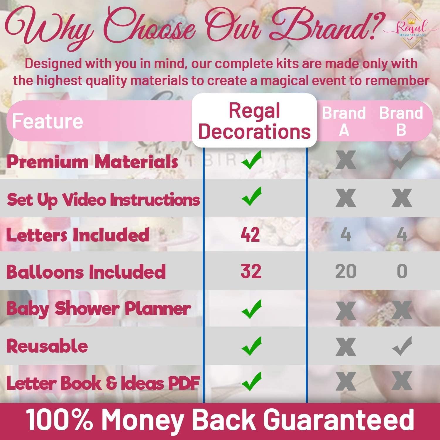 как выглядит 82PCS Baby Shower Decor for Girl  Pink/Gold Boxes Letter Balloons фото