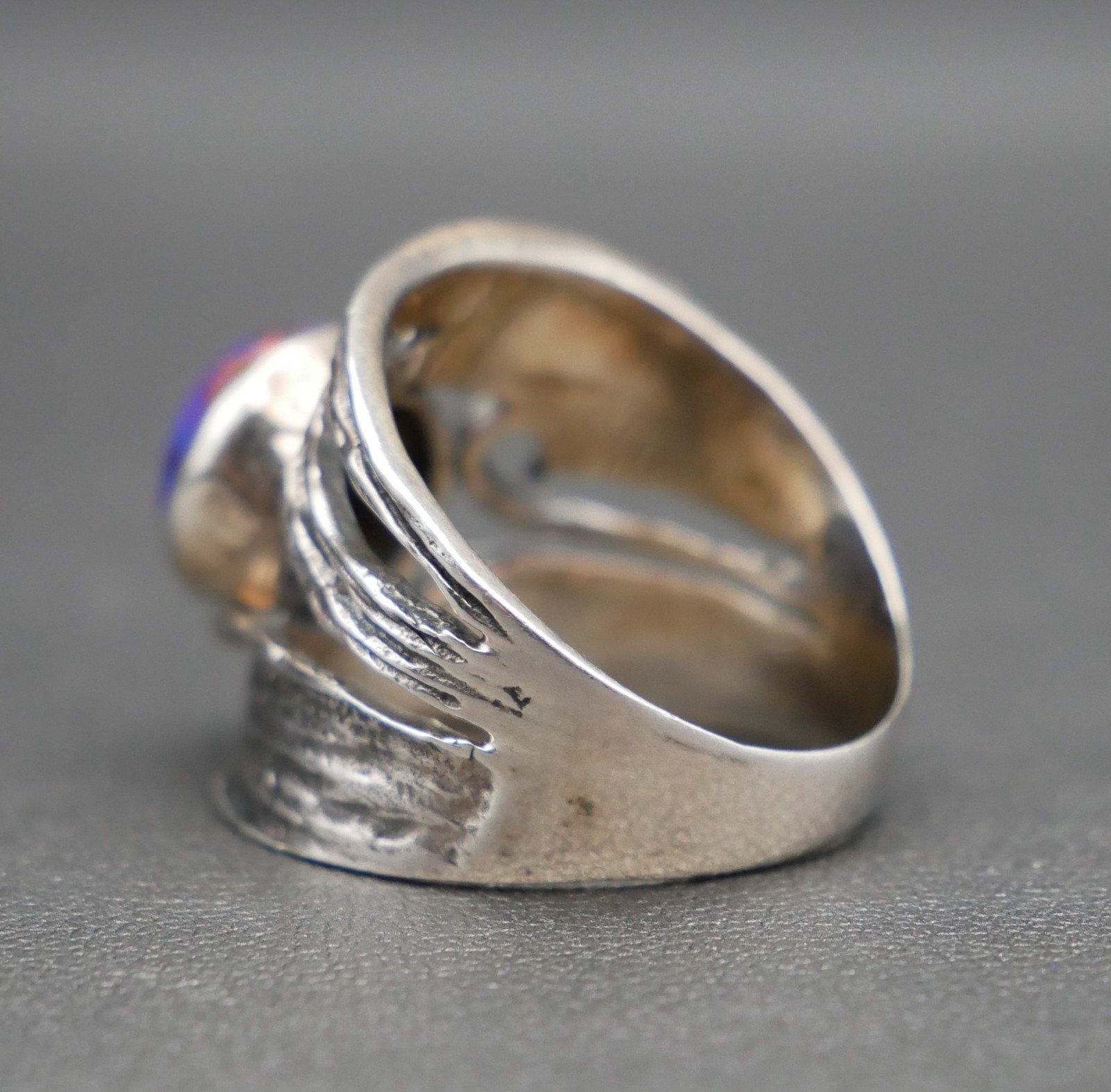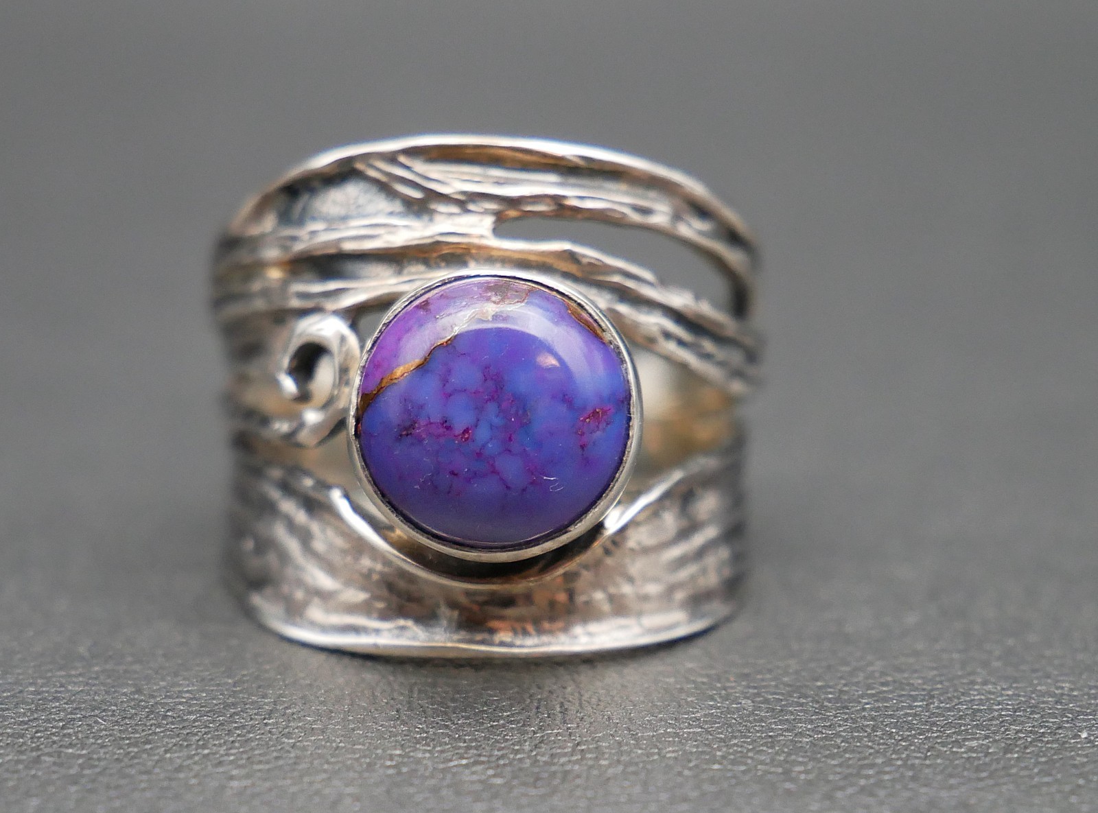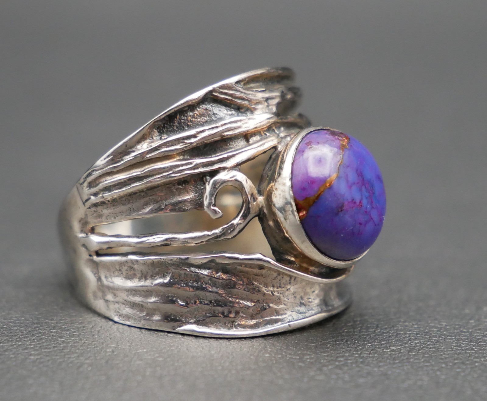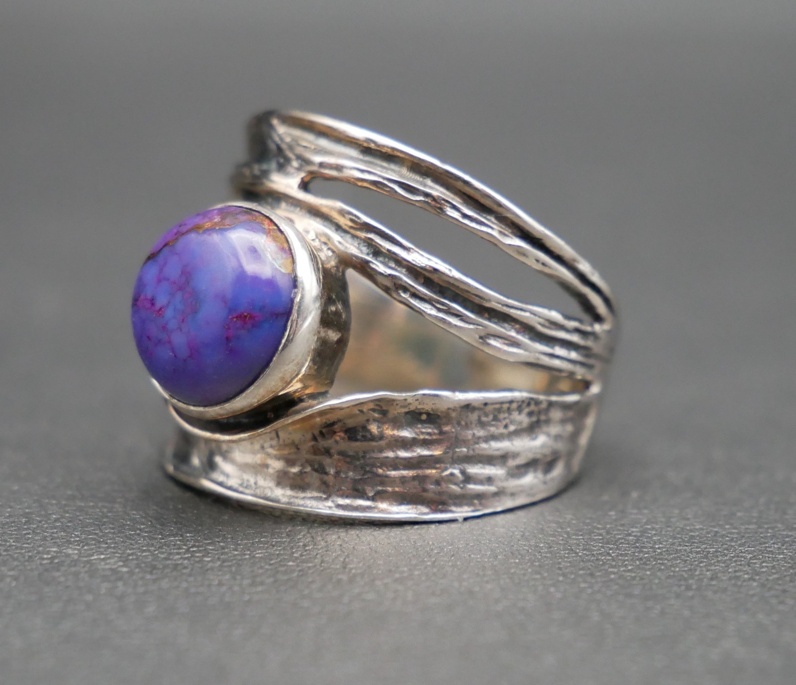 Organic Style Sterling Silver Copper Vein Purple Turquoise Ring Size 8.5