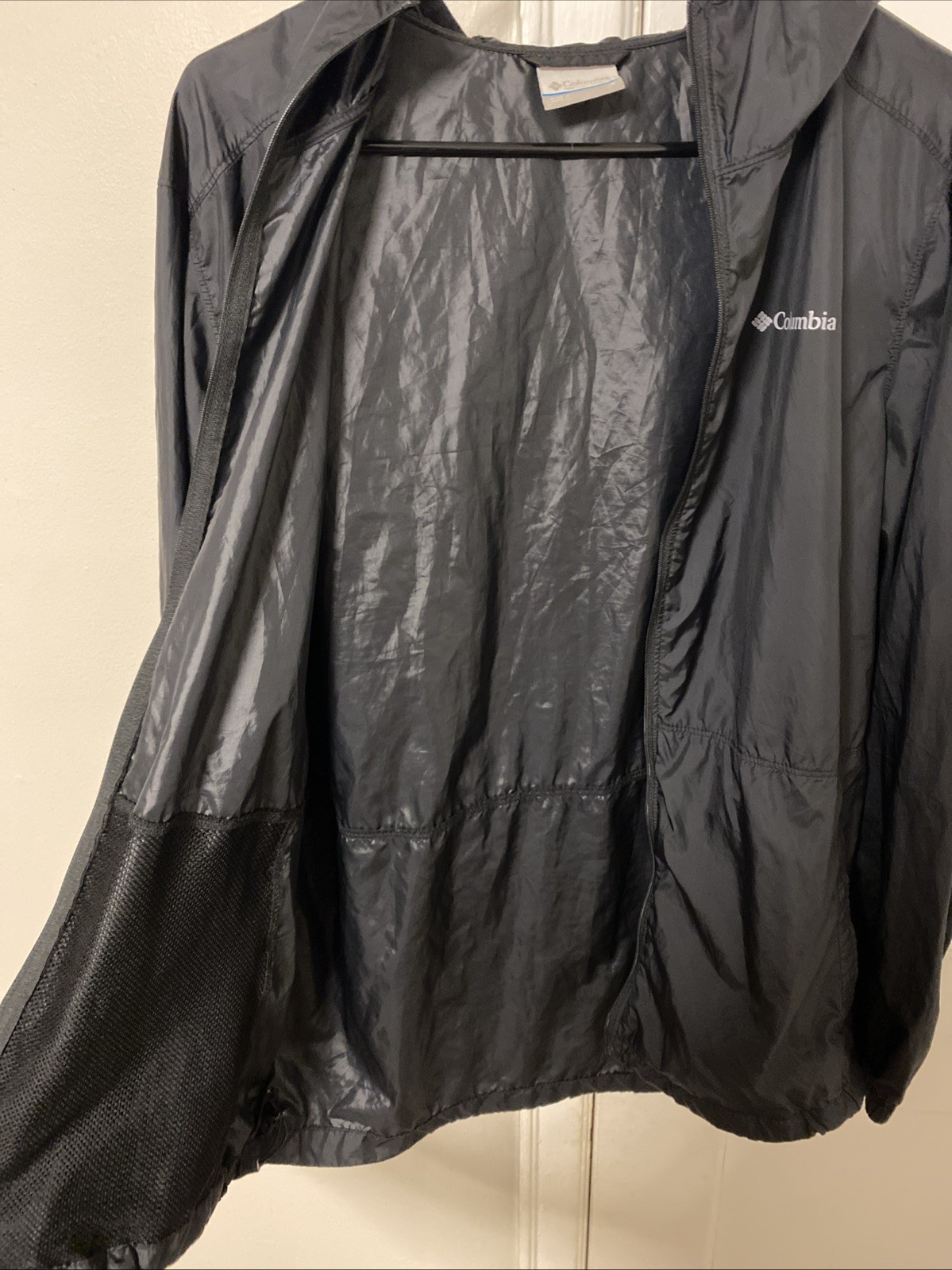 как выглядит Columbia Black Windbreaker With Hoodie Size S. фото