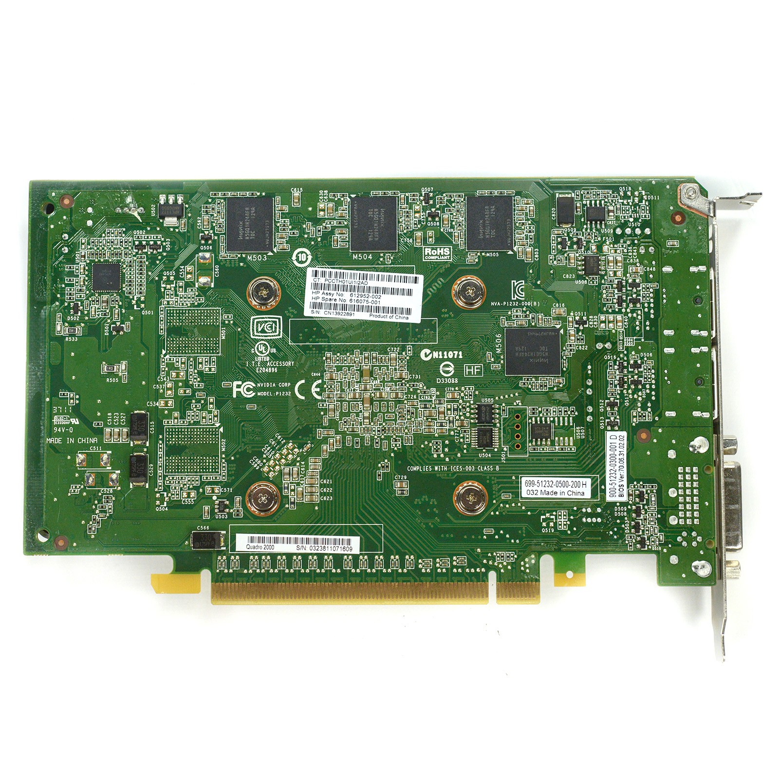 HP Nvidia Quadro 2000 1GB PCI-E x16 Dual D-Port DVI Full Video Card 616075-001