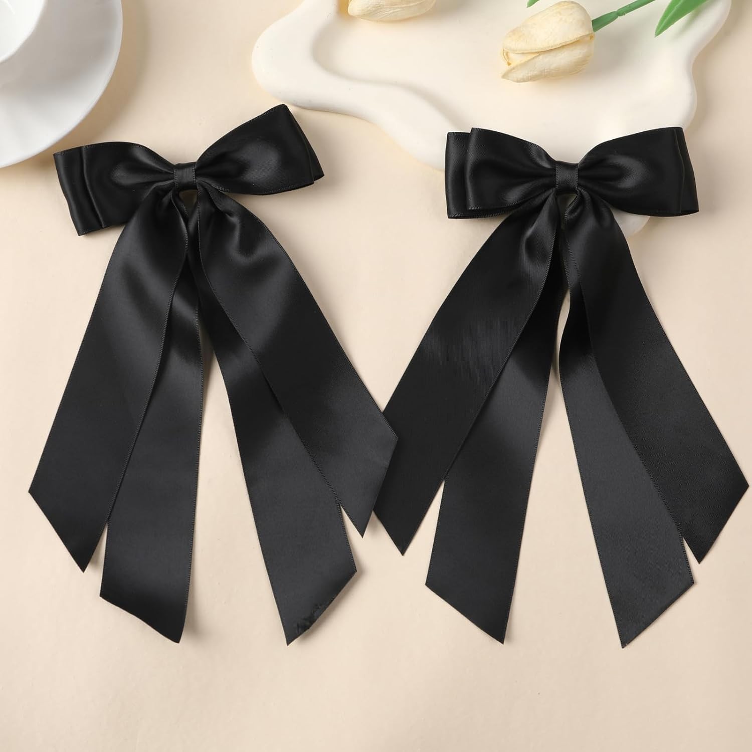 2 PCS Double Layer Hair Bows Black Hair Ribbon Clips Ponytail Holder Accessories