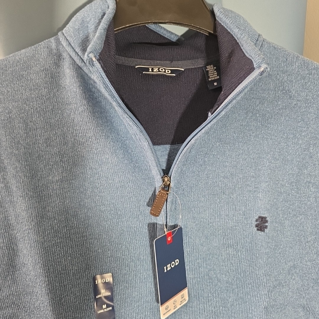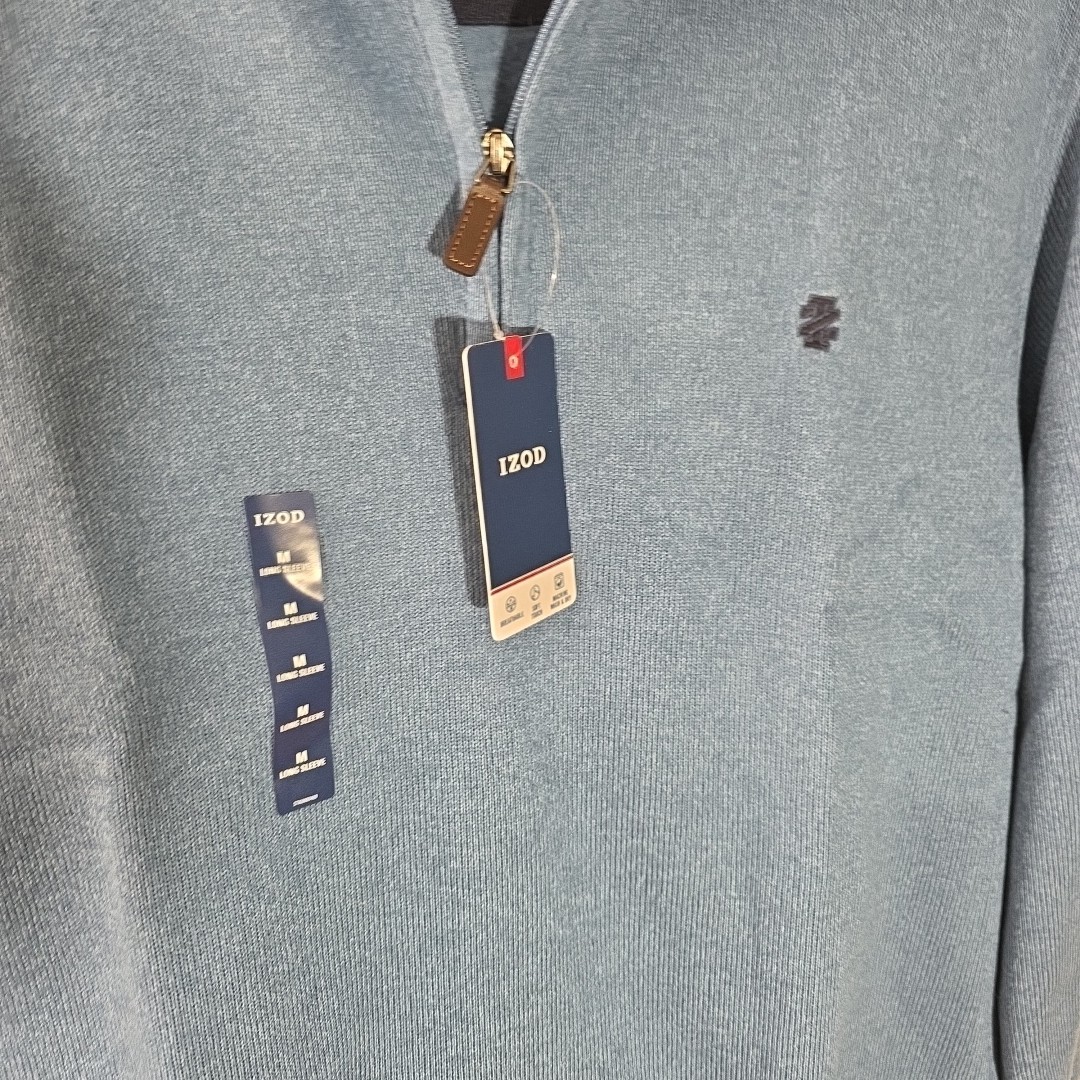 как выглядит Izod Saltwater 1/4 Zip Pullover Sweater Mens M Classic Blue Relaxed . фото