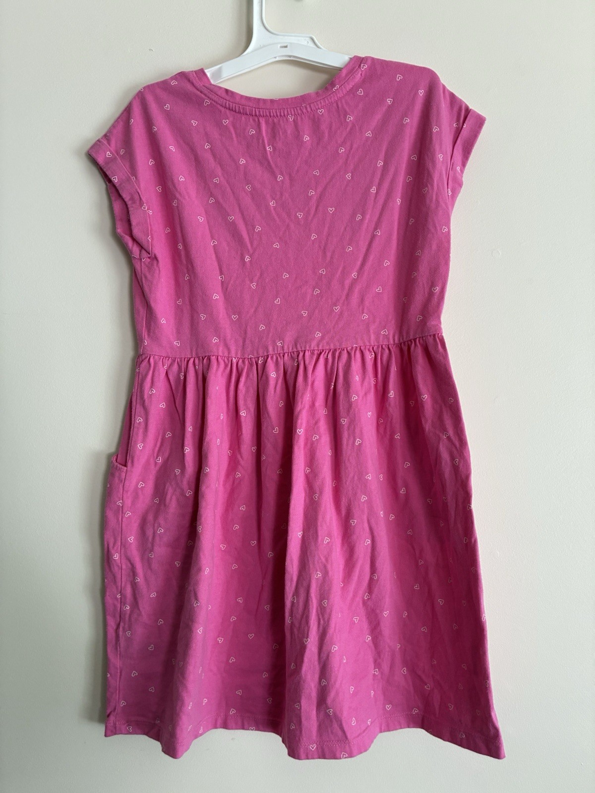 Cat Jack Kids Girls Allover Heart Print 100 Cotton Rolled Sleeve Dress Pink M
