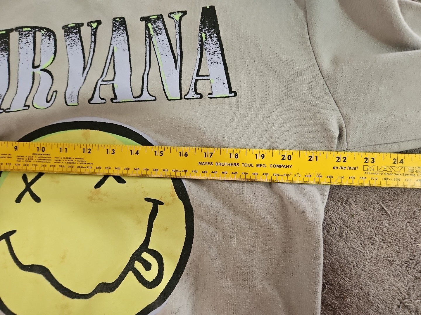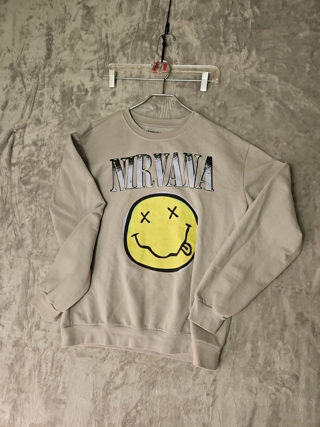 как выглядит Nirvana Sweatshirt Mens L Beige Smiley Face Official Merch Crew Neck 2022 фото
