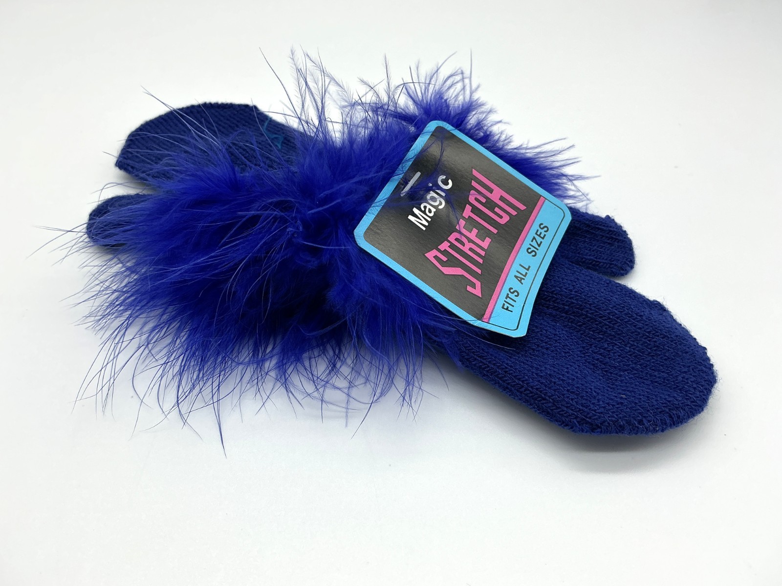 Girls Magic Stretch Mittens NEW with Tags. Navy Blue with Navy Fancy Fur trim