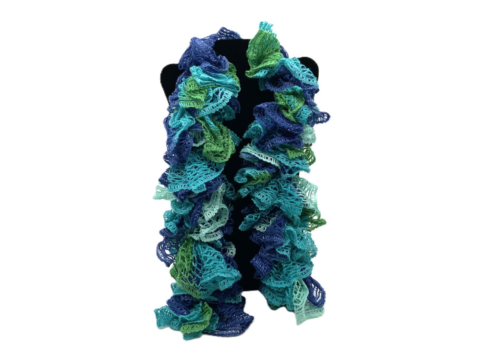 Girls 2P SET Blue Teal Navy Frill Scarf Navy Fur trim Magic Stretch Mittens