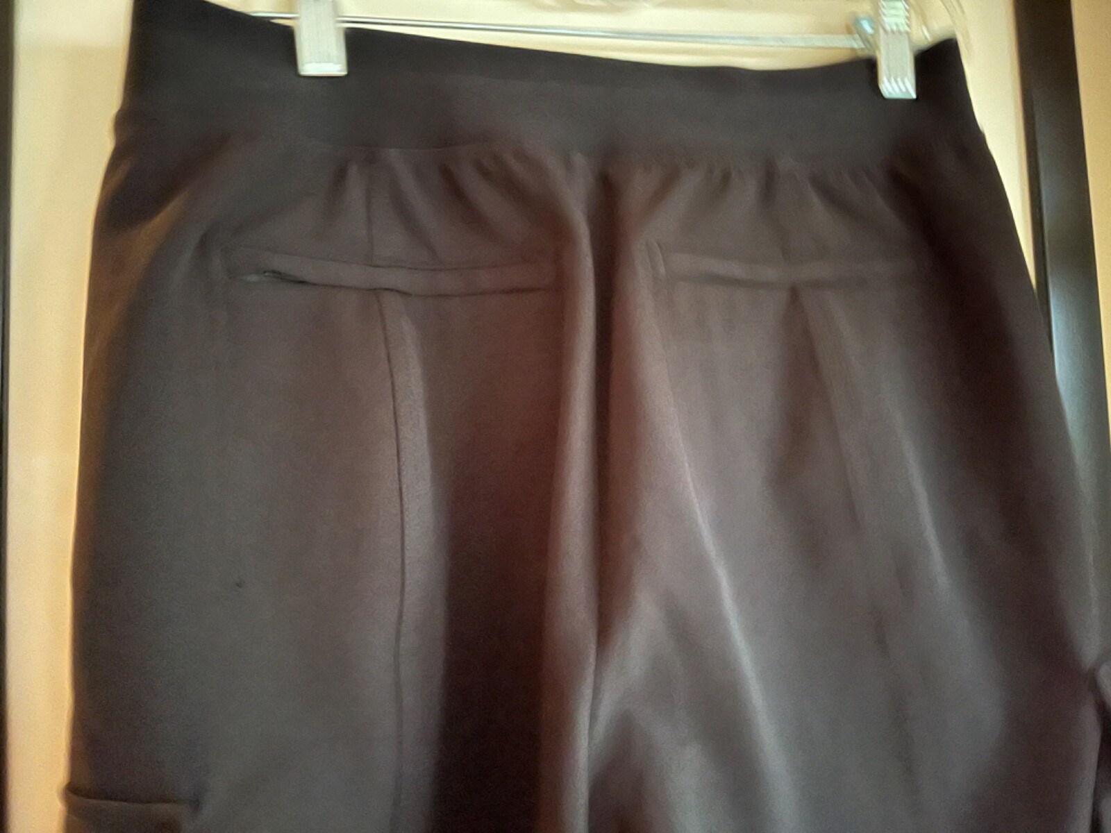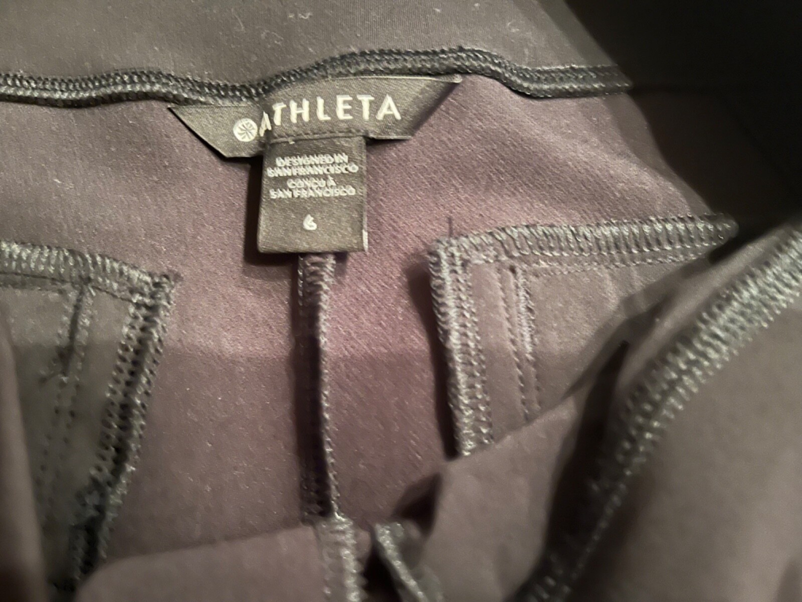 как выглядит Athleta 6 black stretch pants poly/elastane pull on,front pockets unopened back фото