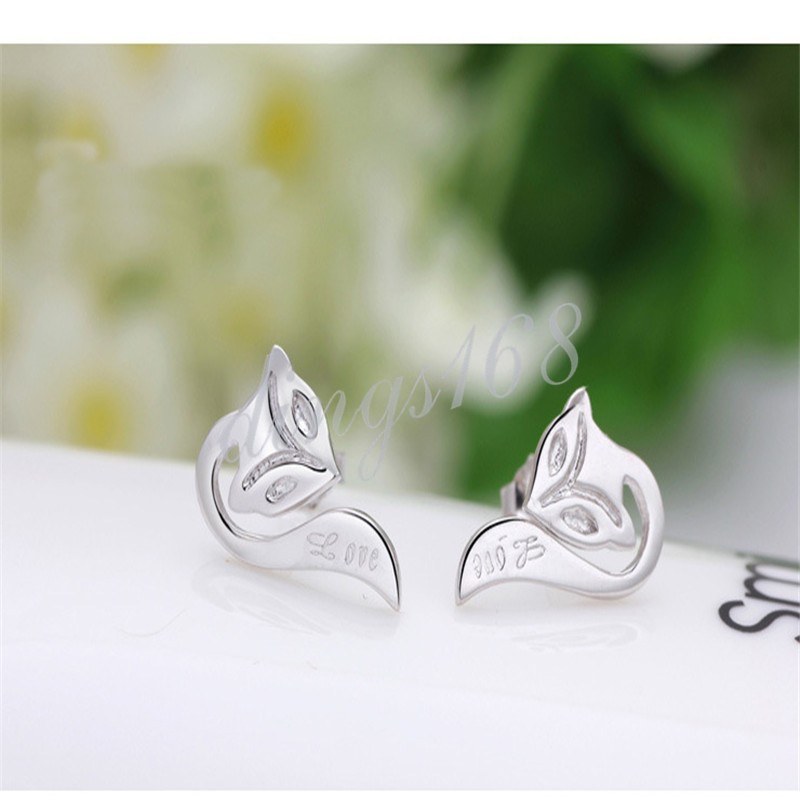 как выглядит Girls 925 Sterling Silver Cute Fox "LOVE" Engrave 13mm Stud Post Earrings A1039 фото