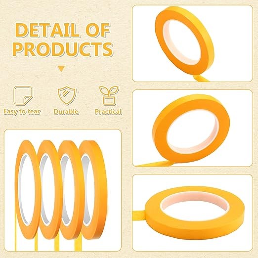 как выглядит 4 Rolls Pinstripe Tape, Masking Tape in 1/16, 1/8, 1/4 and 1/2 Inch Wide, for фото