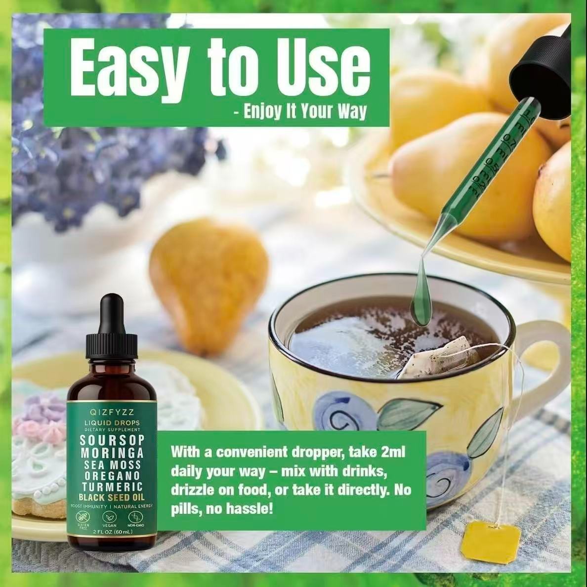 как выглядит Soursop Bitters Liquid Drops 10-in-1 with Nori, Moringa, Turmeric, Black Seed фото