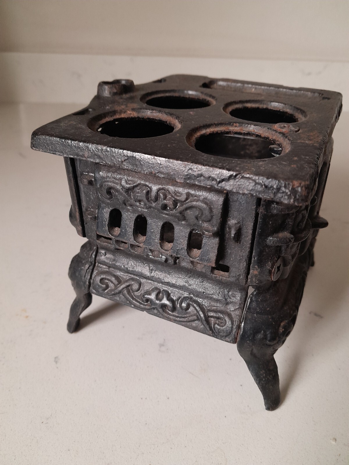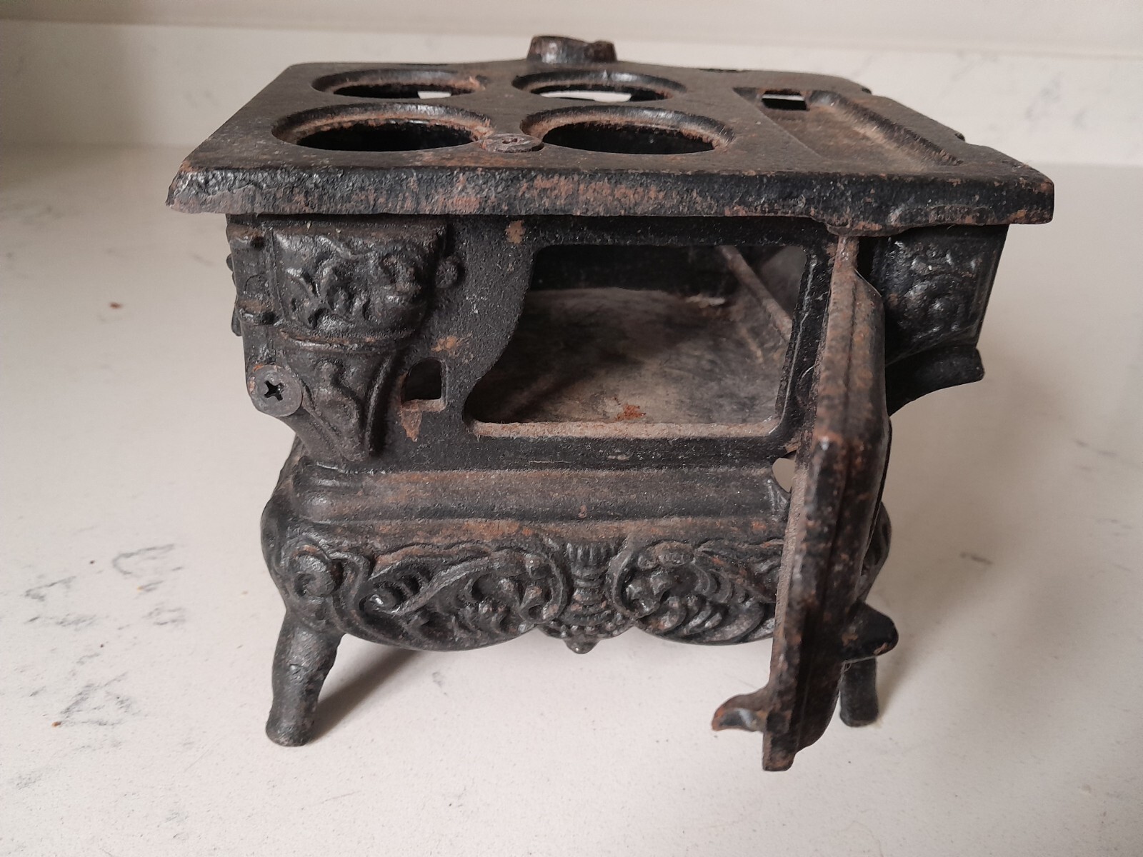 как выглядит Vintage Crescent Cast Iron Stove Salesman Child