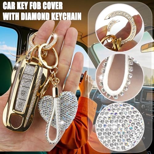 Compatible with Porsche Key Fob Cover with Heart Keychain, Car Key Shell Gold