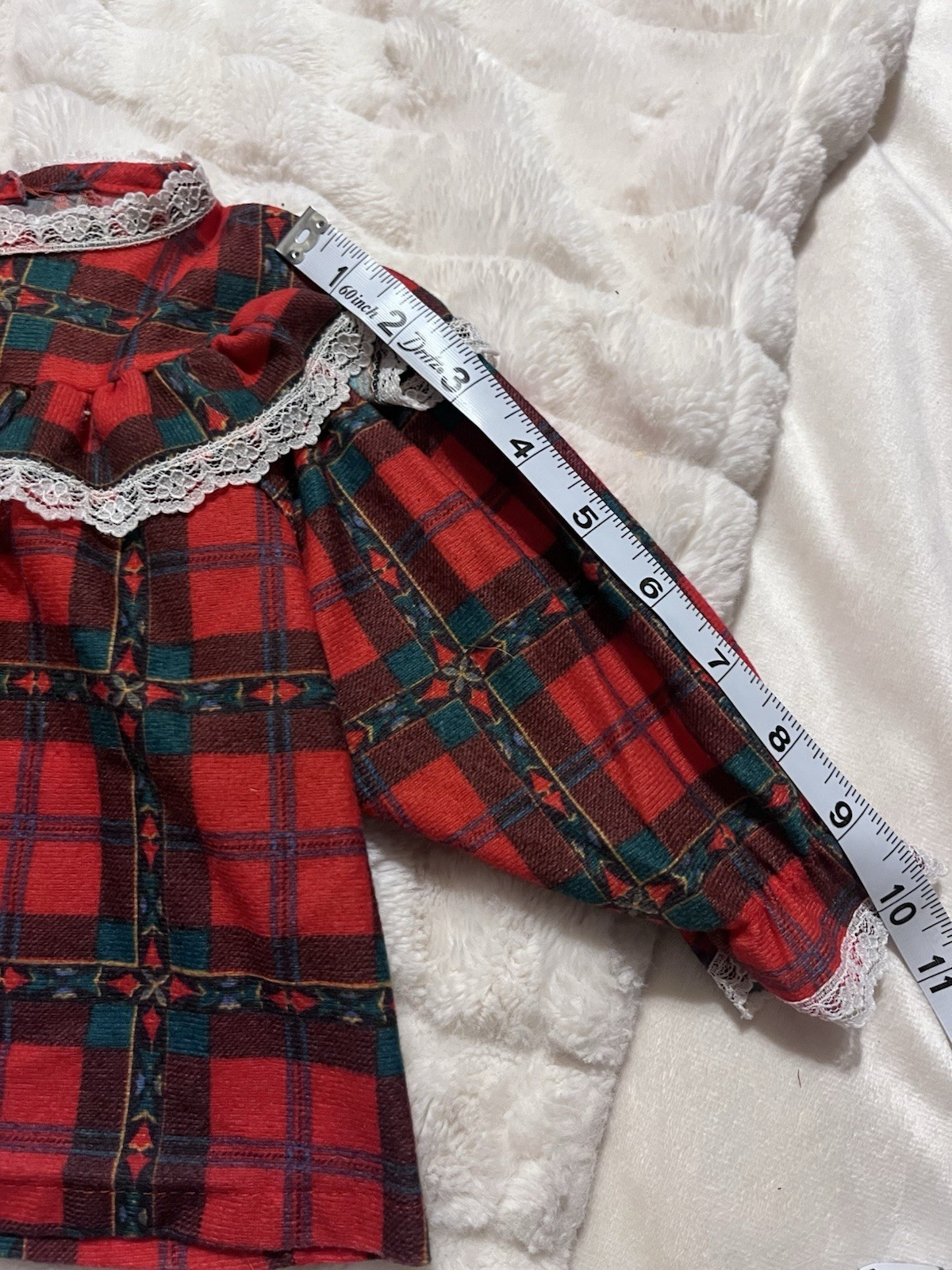Vintage Cassie Holiday Plaid Pajama Set Red Green Flannel, Lace Trim