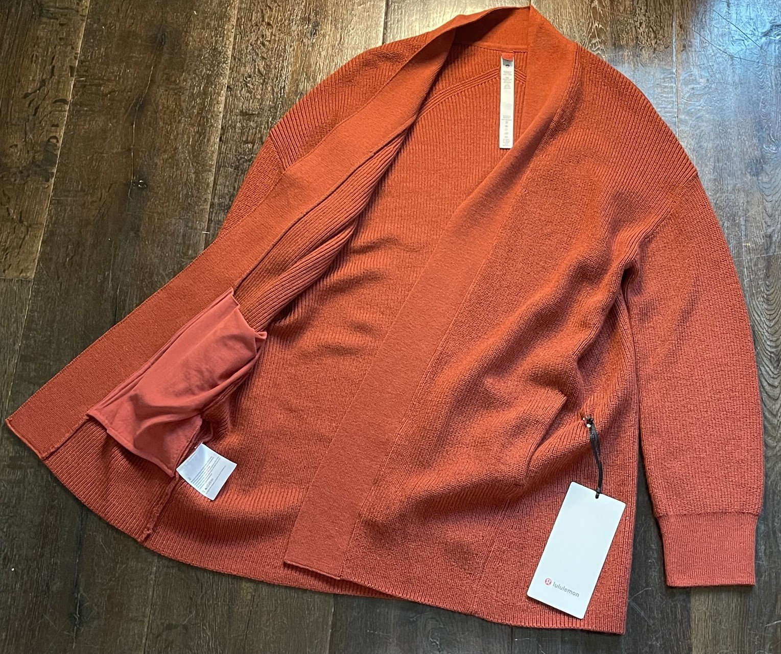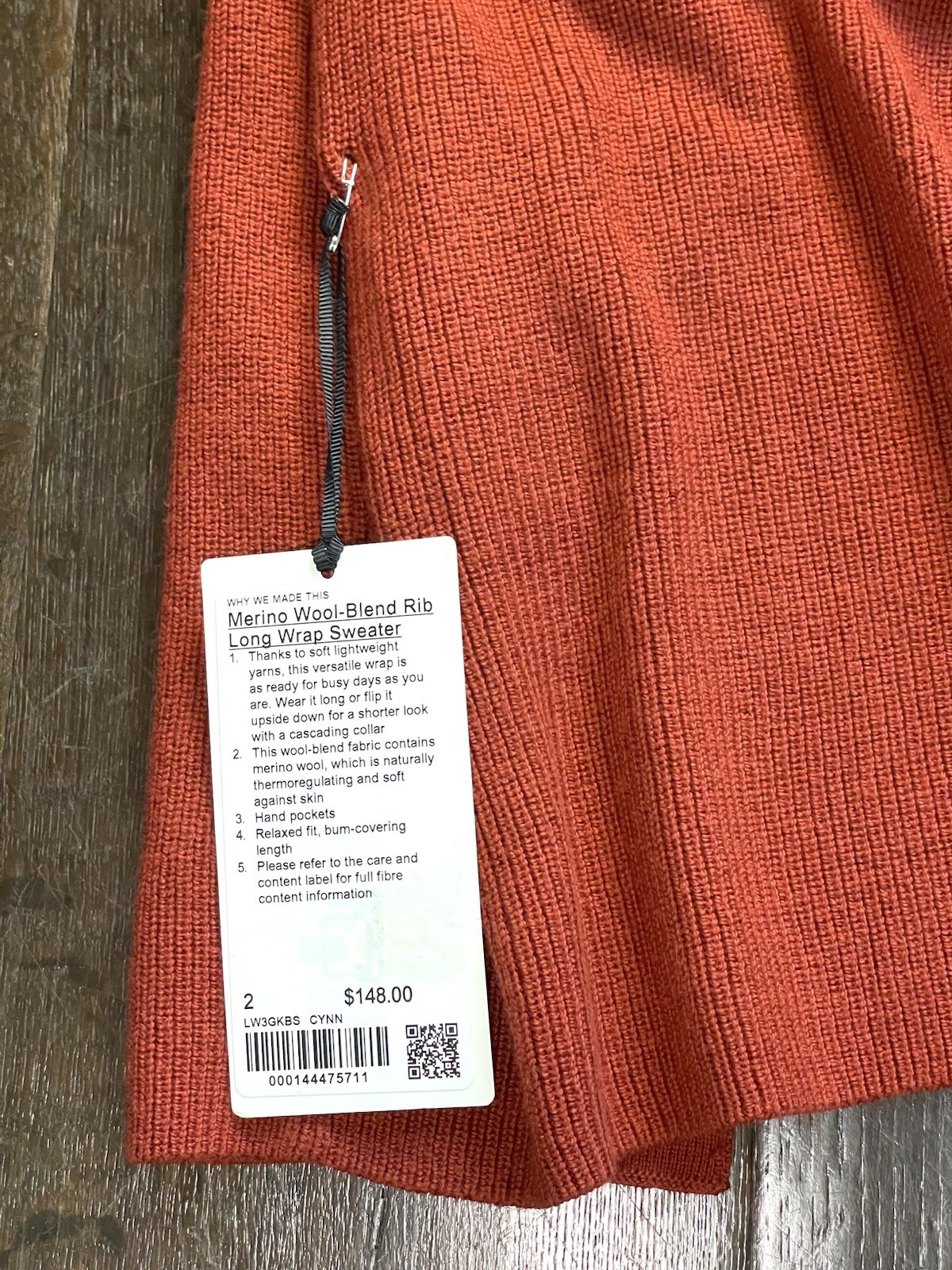 NWT Lululemon Merino Wool Blend Sweater Long Wrap Cardigan Sz2 Cayenne 148