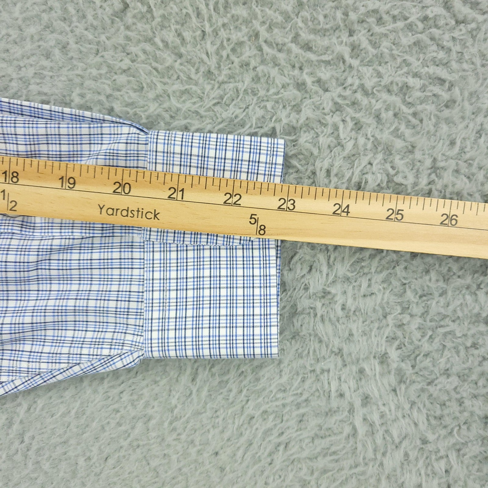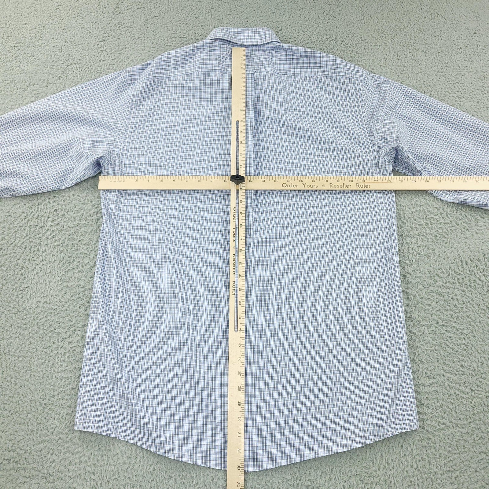 как выглядит Roundtree Yorke Gold Label Shirt Mens 16 34 Blue Check Button Down Long Sleeve фото