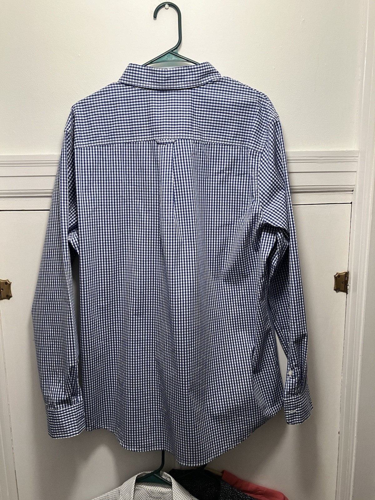 как выглядит CHAPS NWT Men s Large Navy/White Easy Care Stretch Button Down Plaid Dress Shirt фото