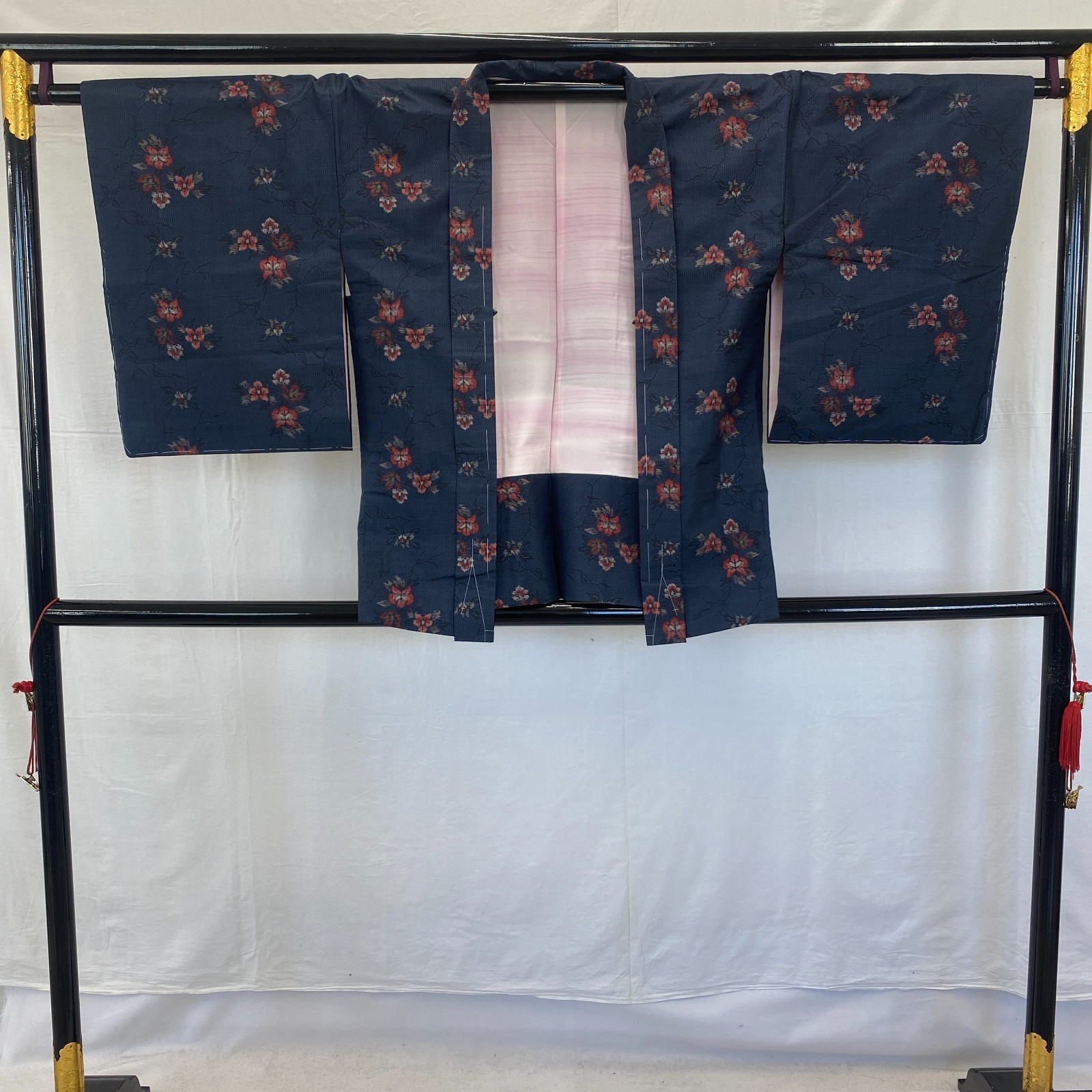 Japanese Vintage Kimono Haori Jacket Silk Navy Oshima Tumugi Traditional 31in