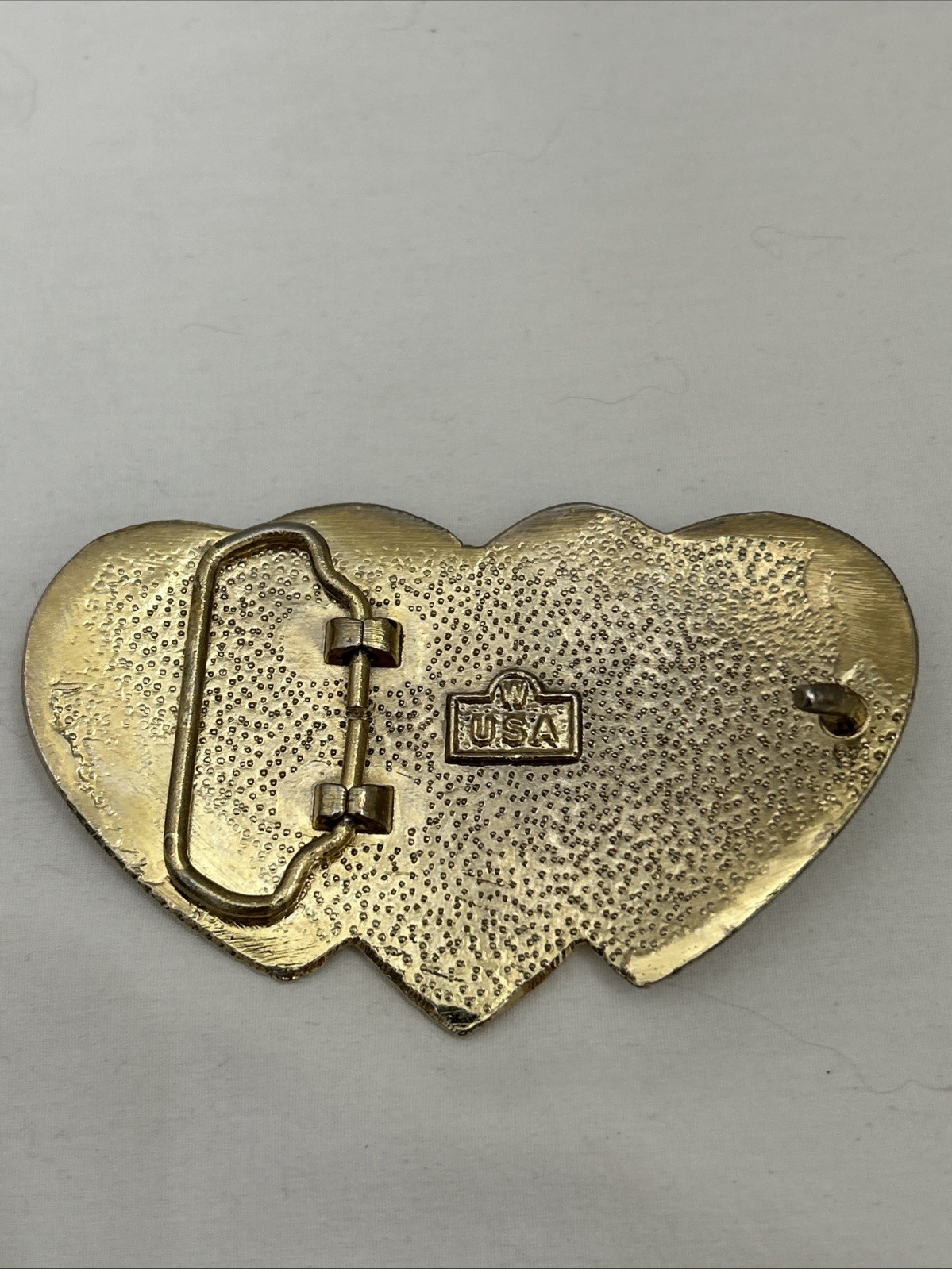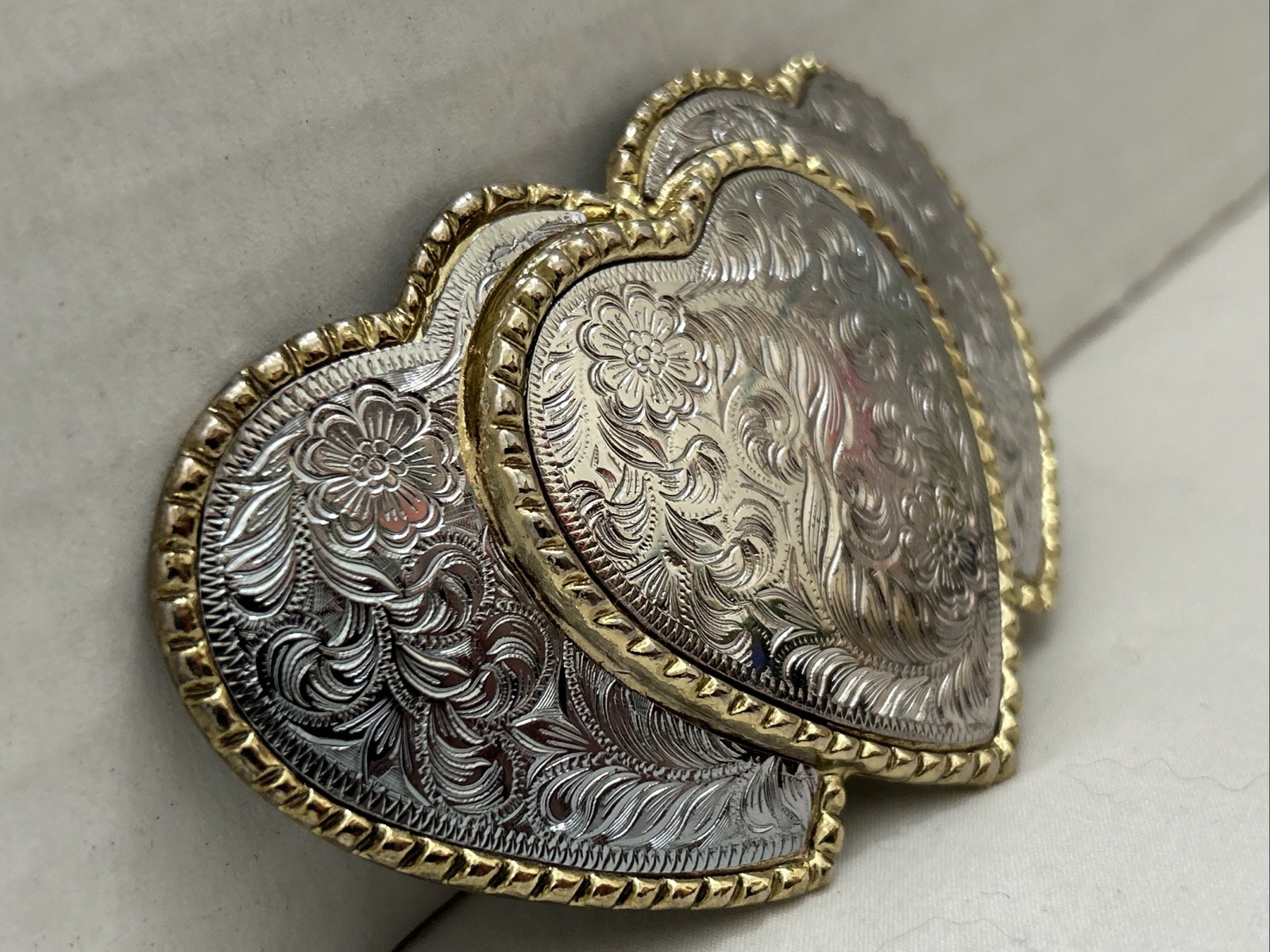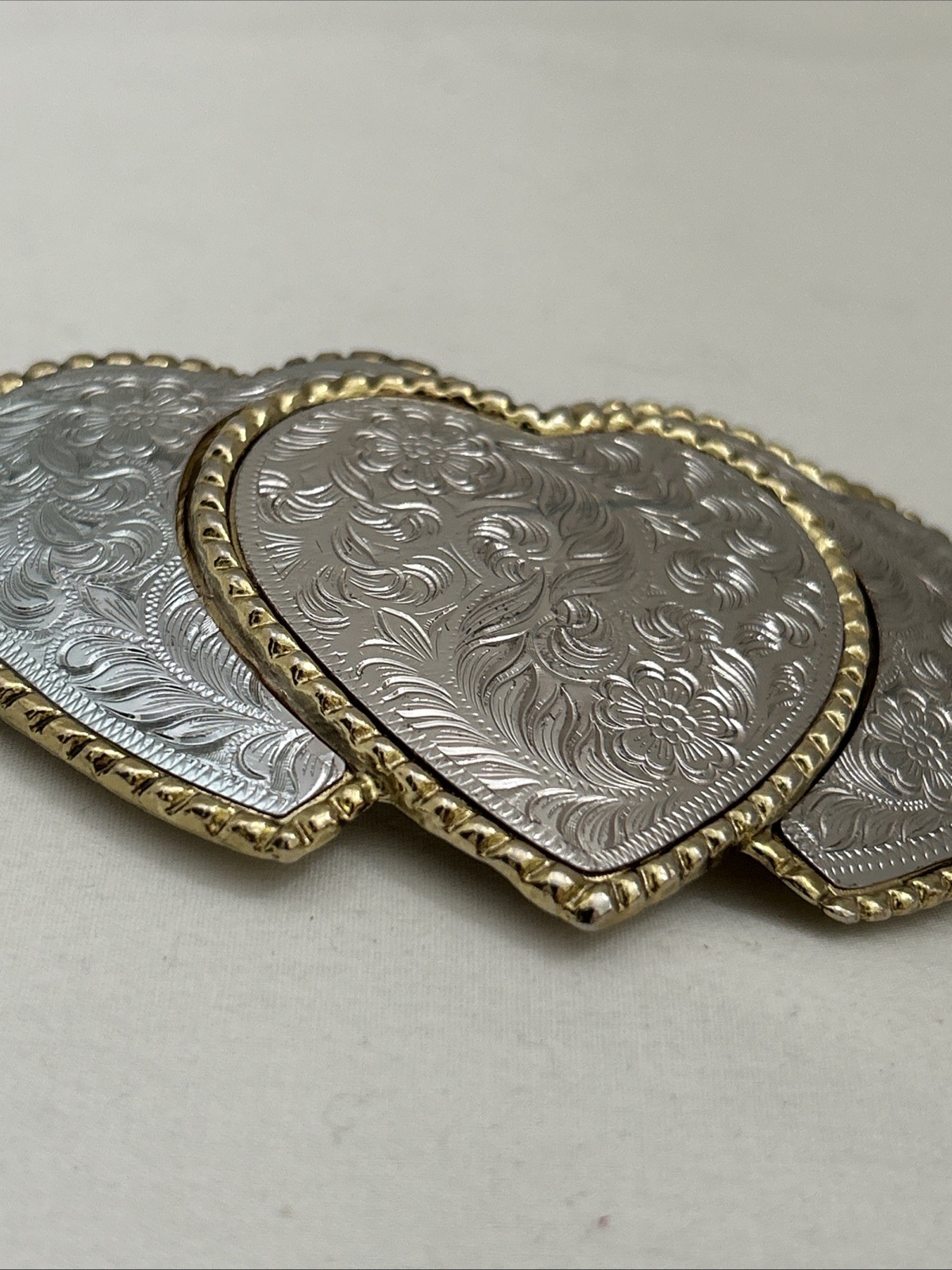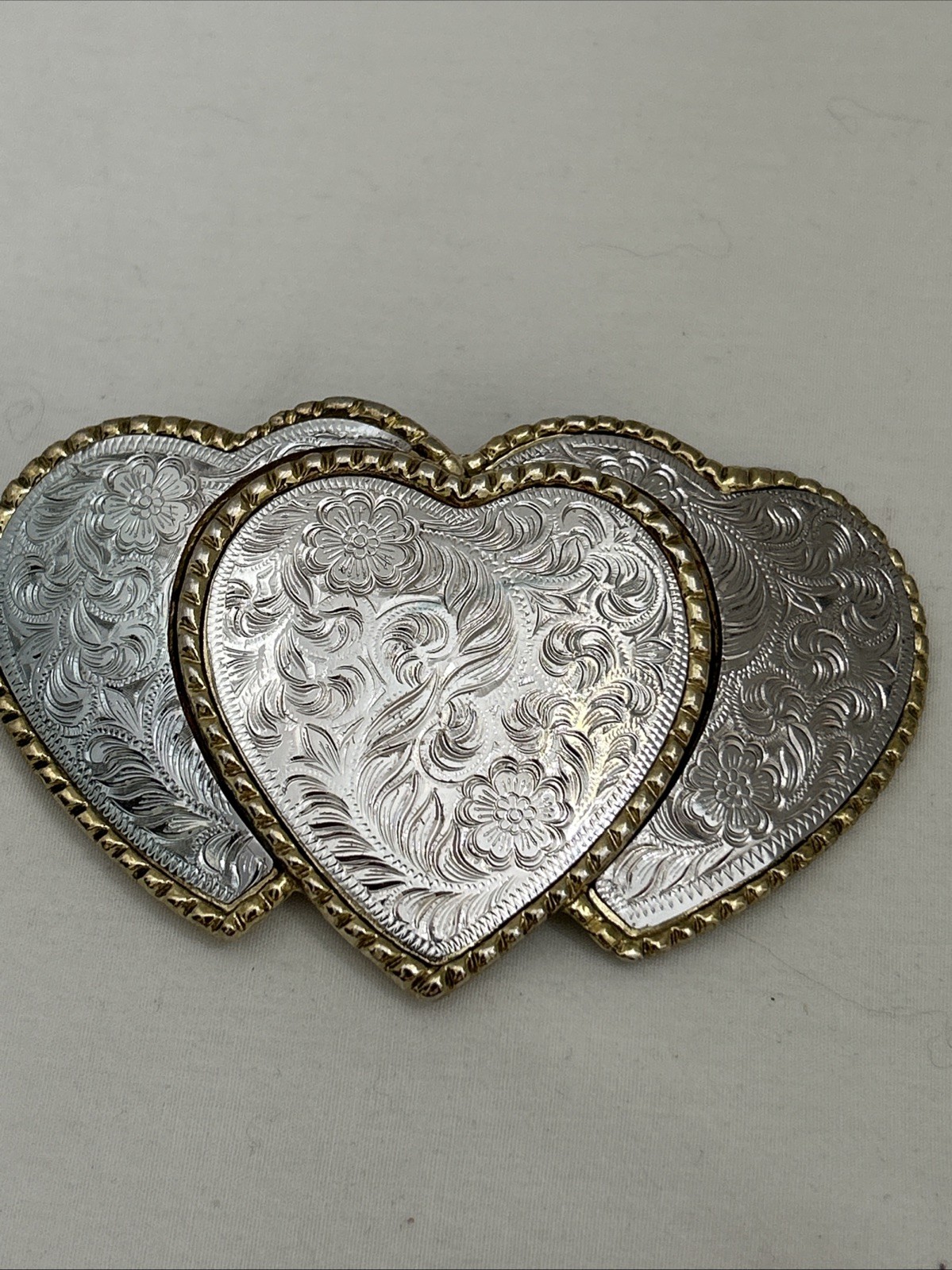 Vintage W USA Triple Heart Belt Buckle Heavy Metals Western Statement