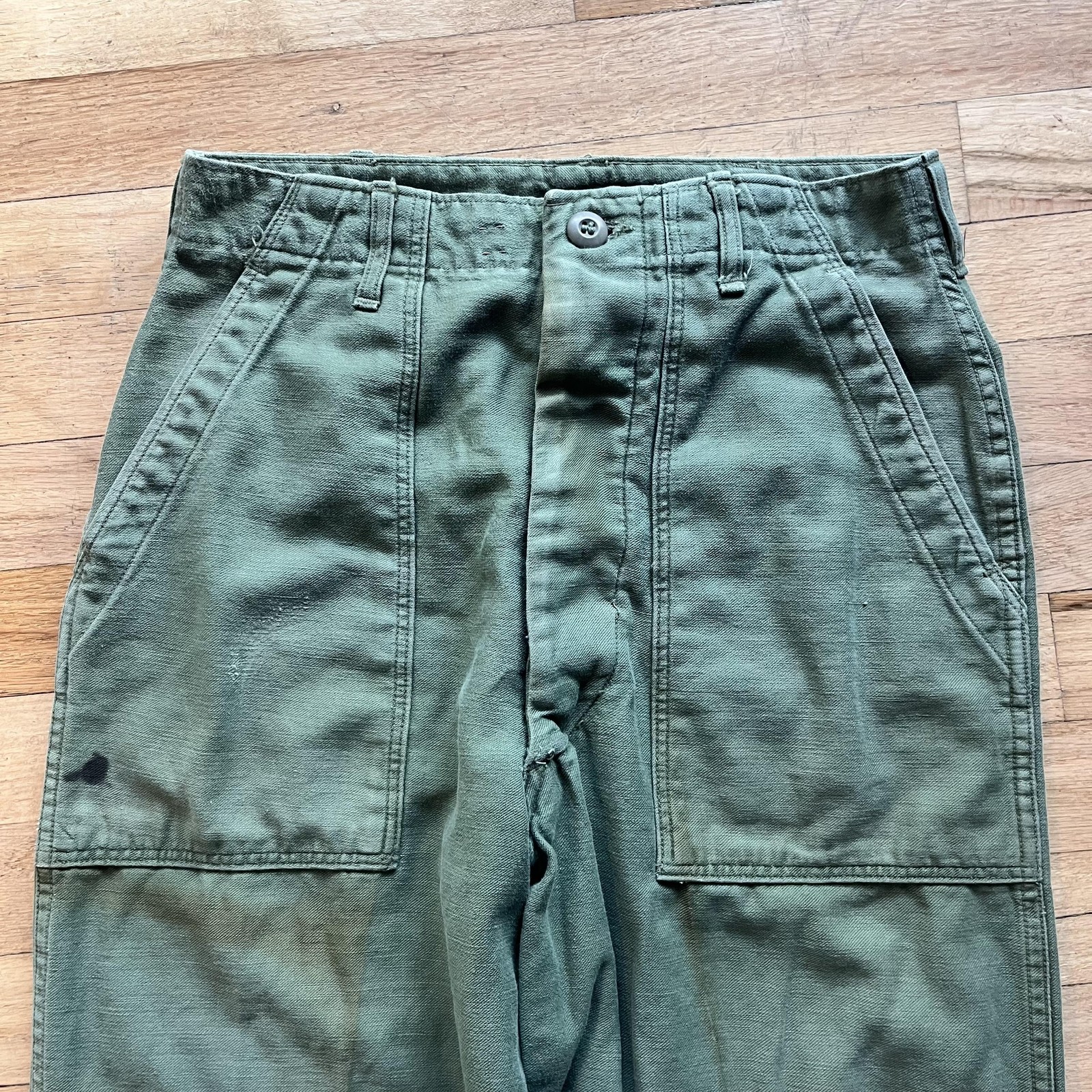 Vintage US Army OG-107 Utility Trousers Pants Mens 28x29 Green Cotton Sateen