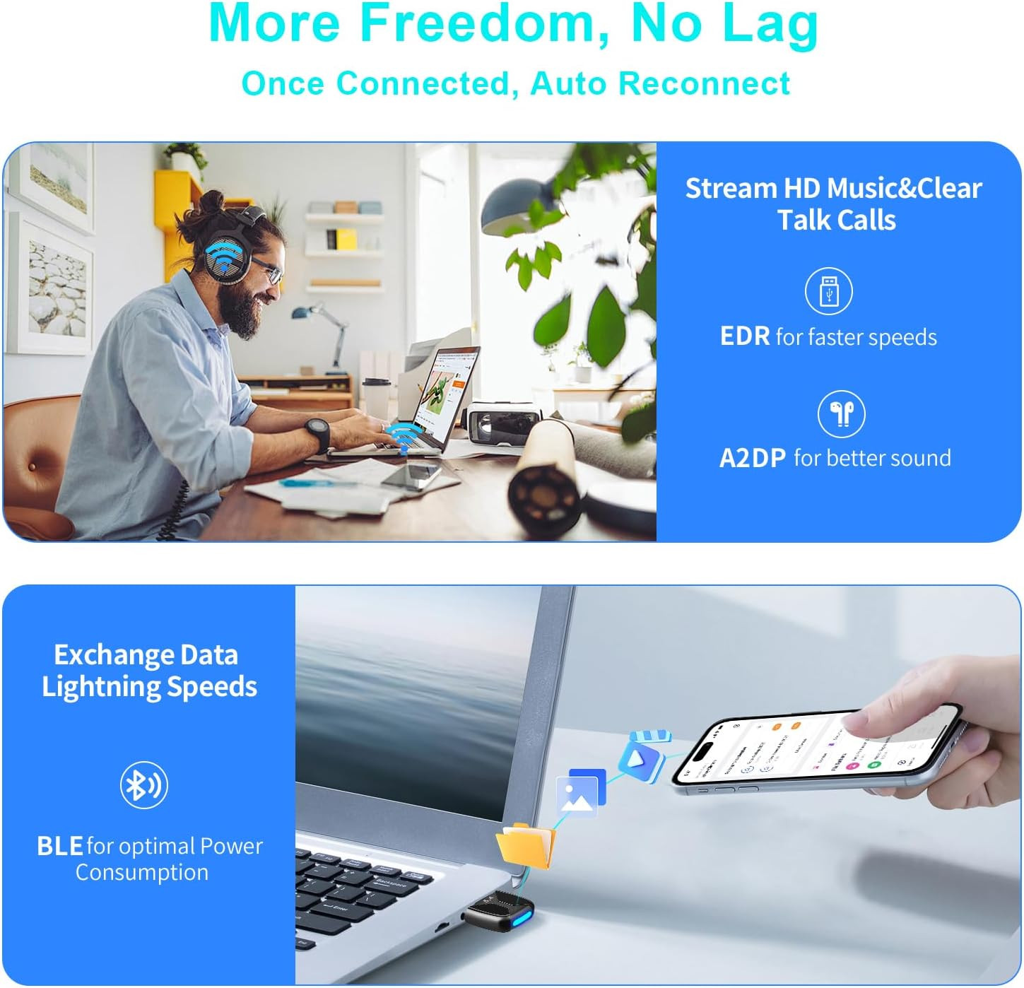 Upgraded USB Bluetooth 5.4 Adapter for PC, Wireless USB Dongle for Laptop Deskto