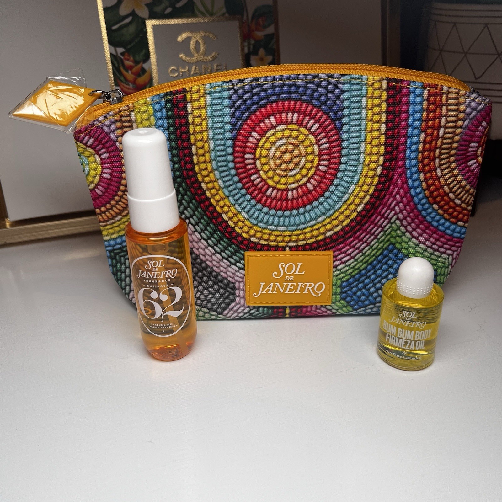 Sol de Janeiro Bundle Set Bum Bum Body Oil 62 Perfume Mist Colorful Cosmetic Bag