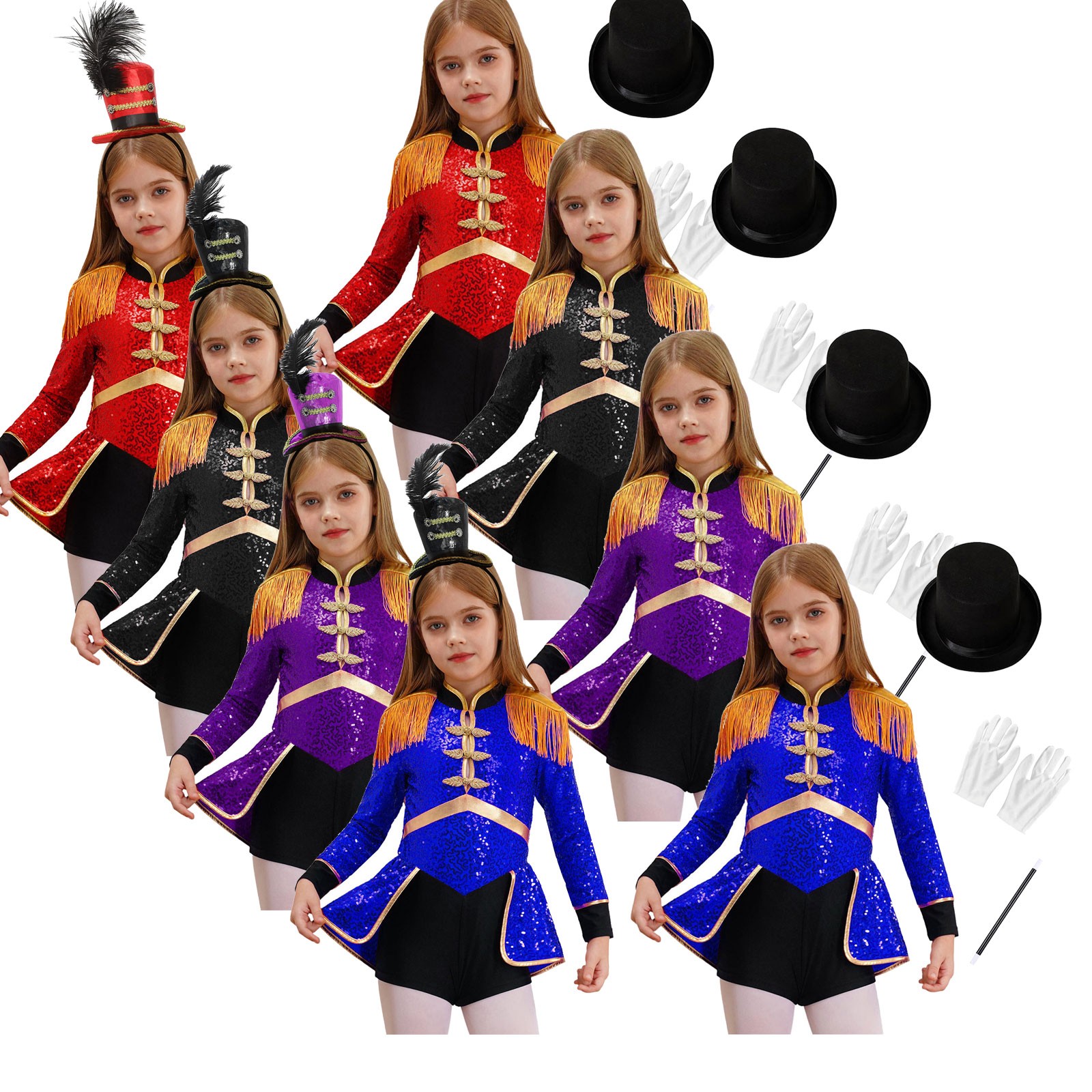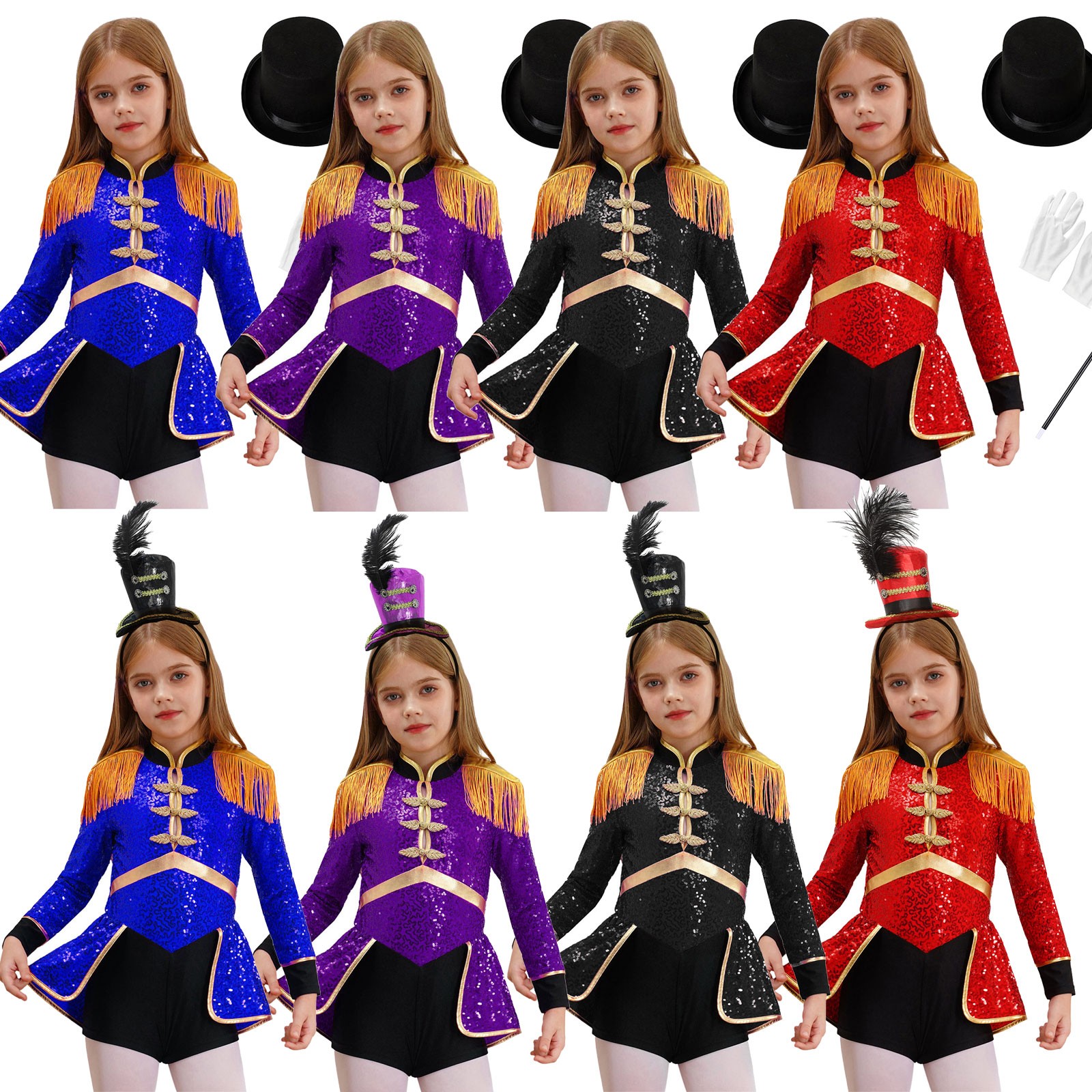 Girls Circus Ringmaster Drummer Fancy Dress Costume Long Sleeve Sequins Jumpsuit