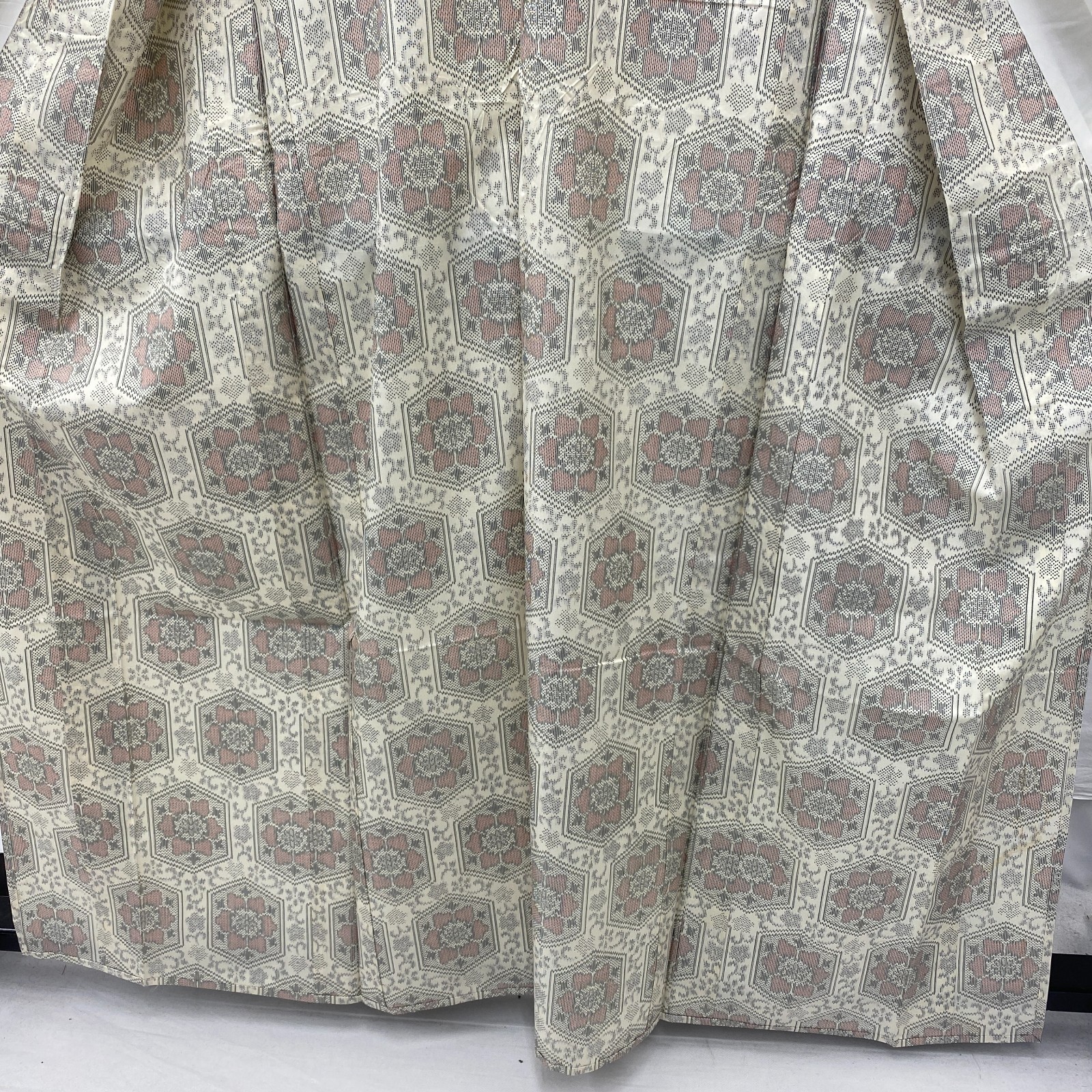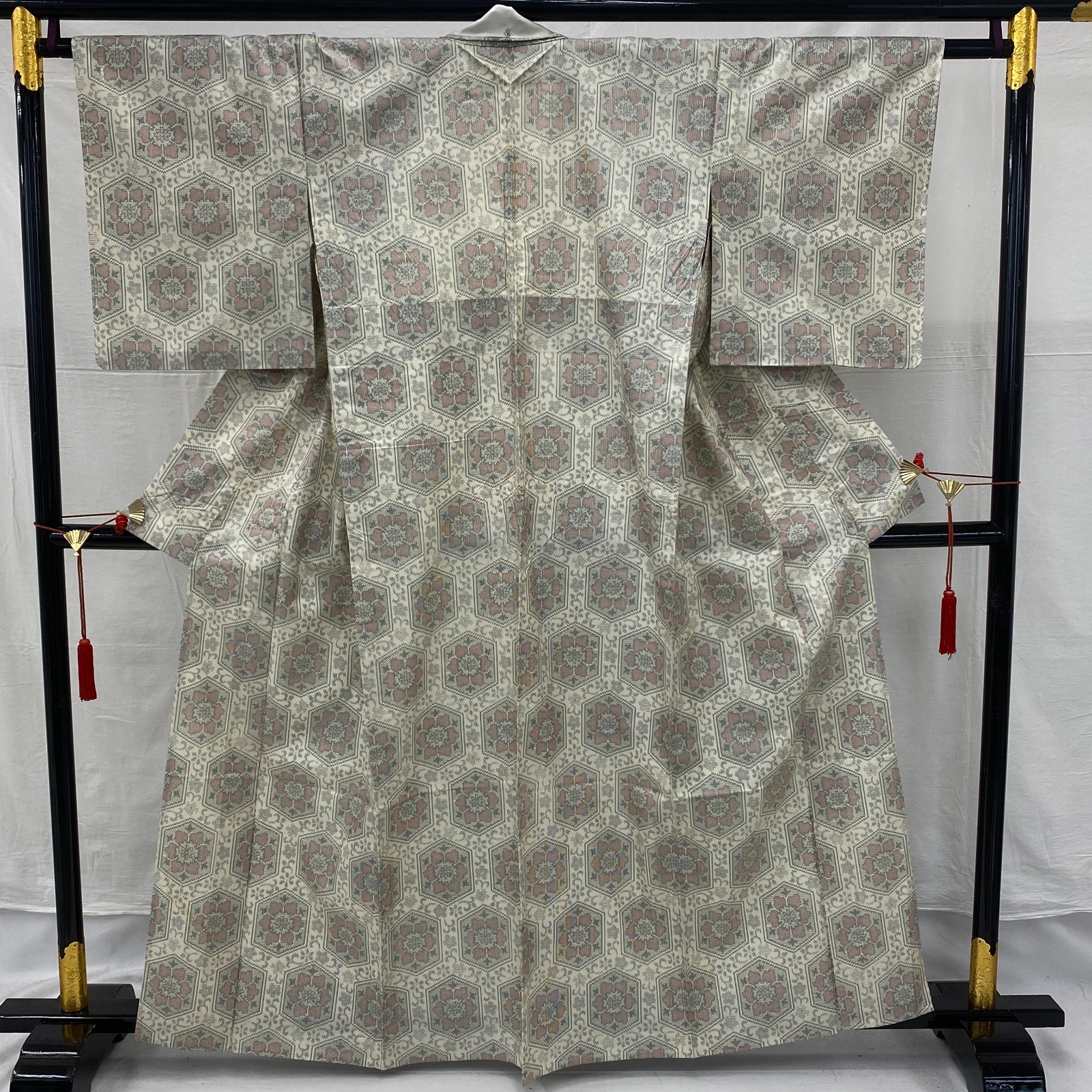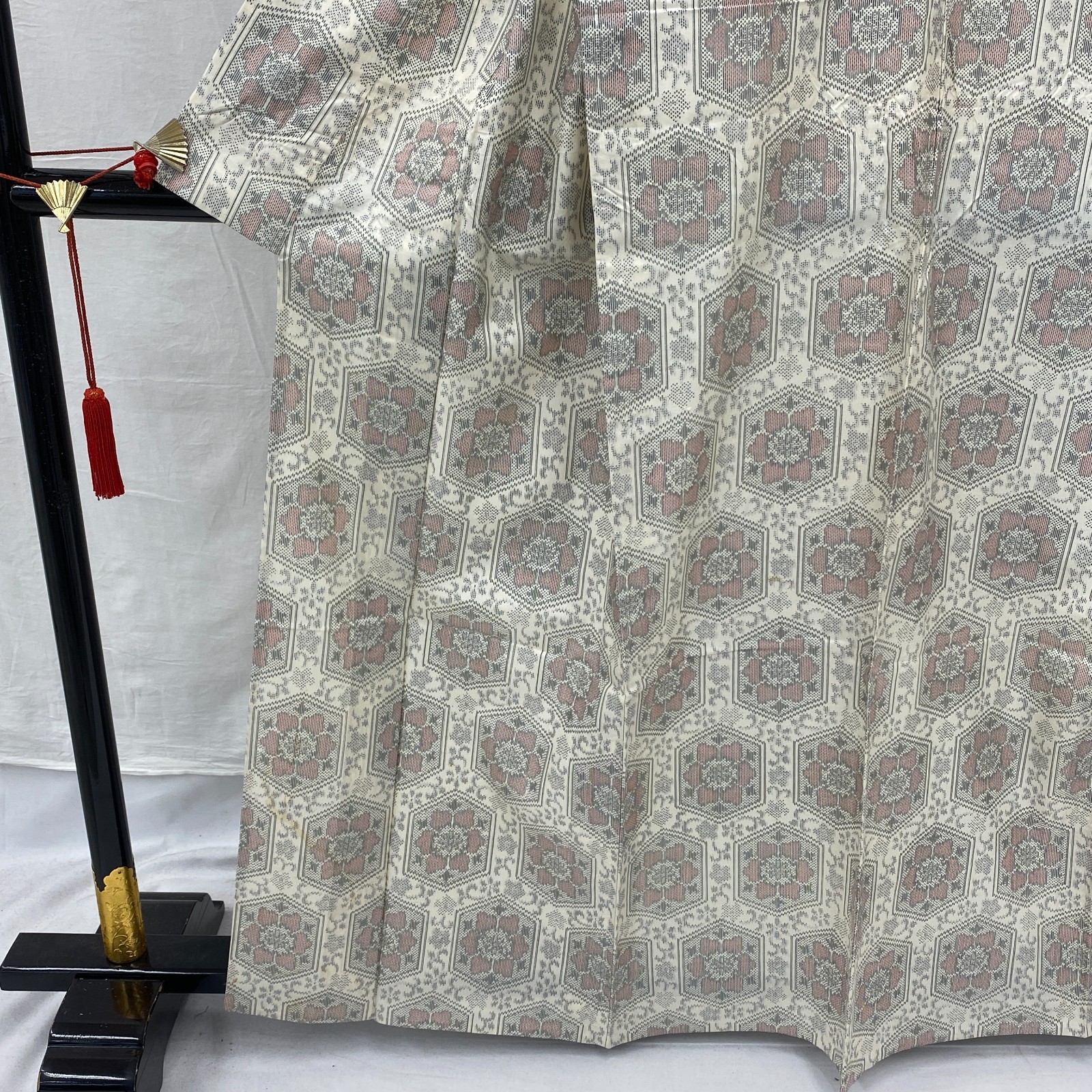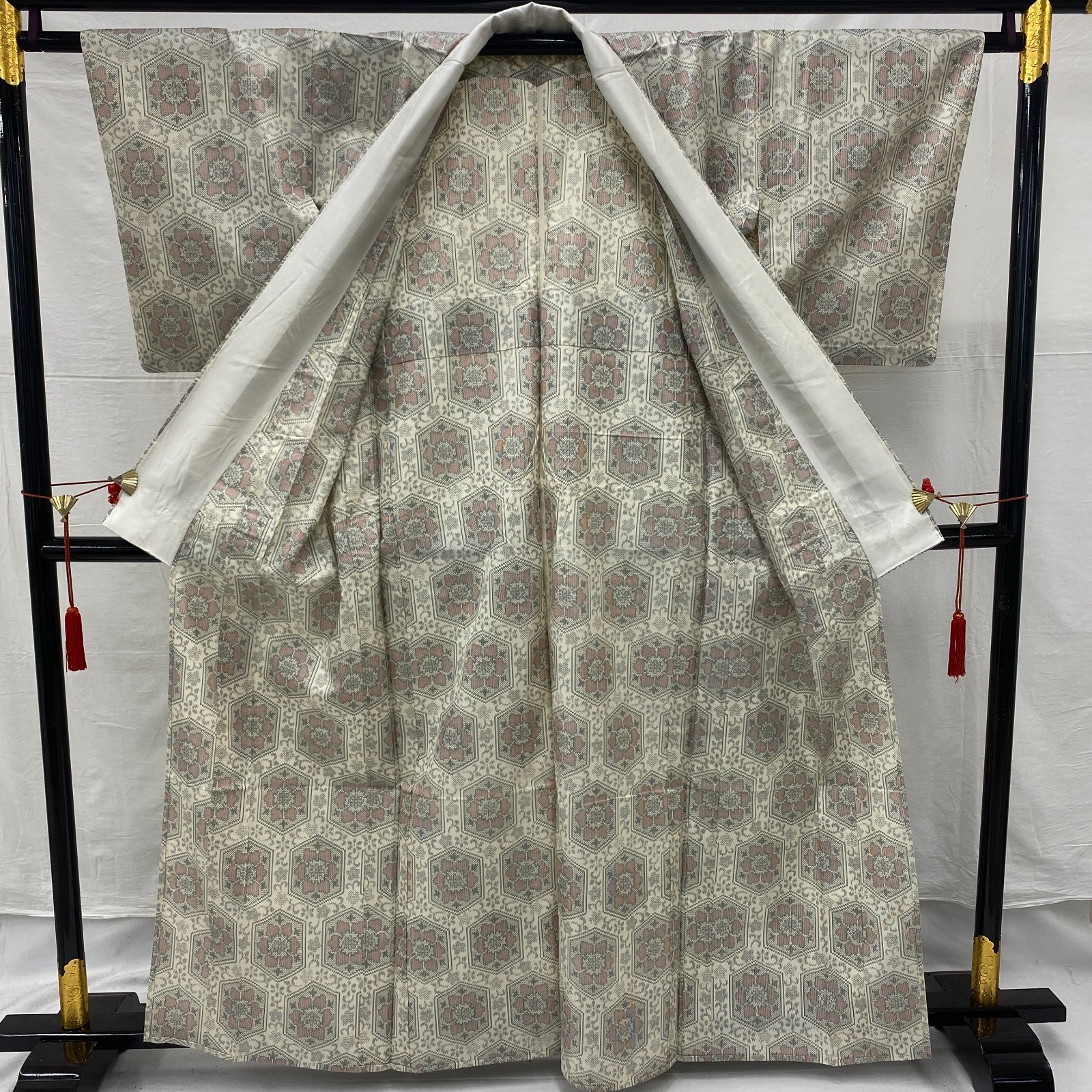 Japanese Vintage Kimono Silk White No Lining Oshima Traditional Length 62in