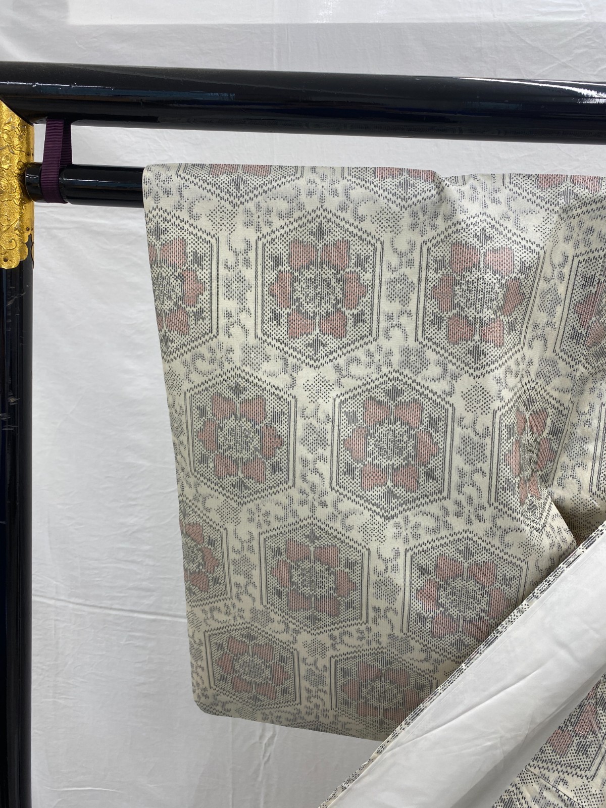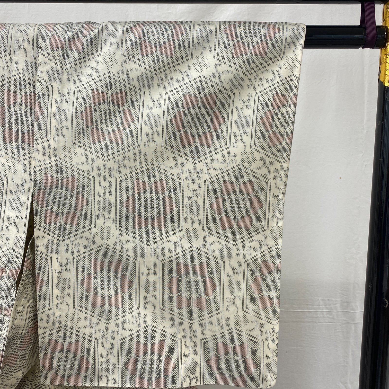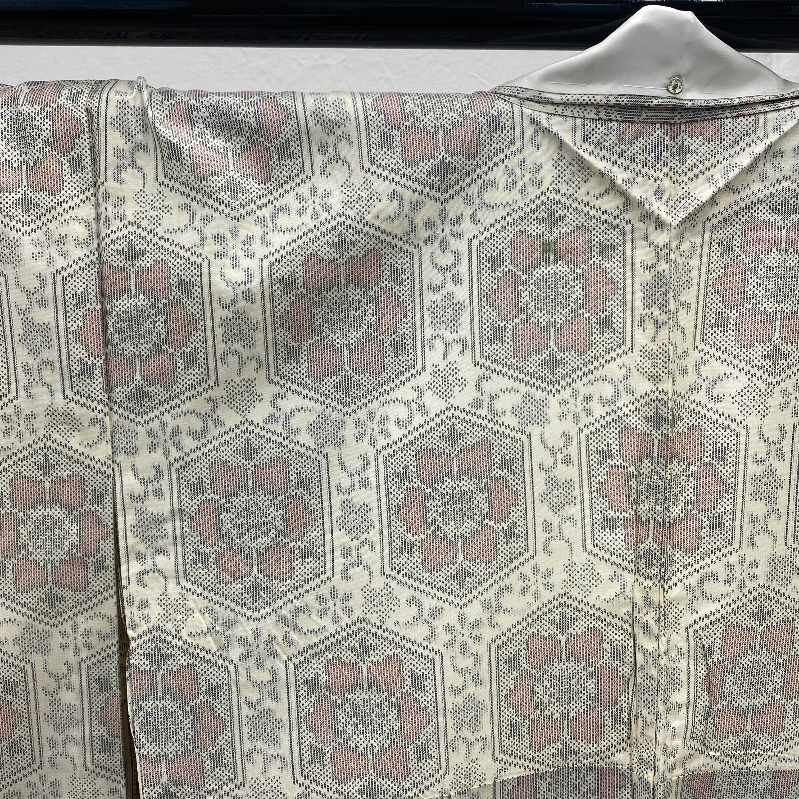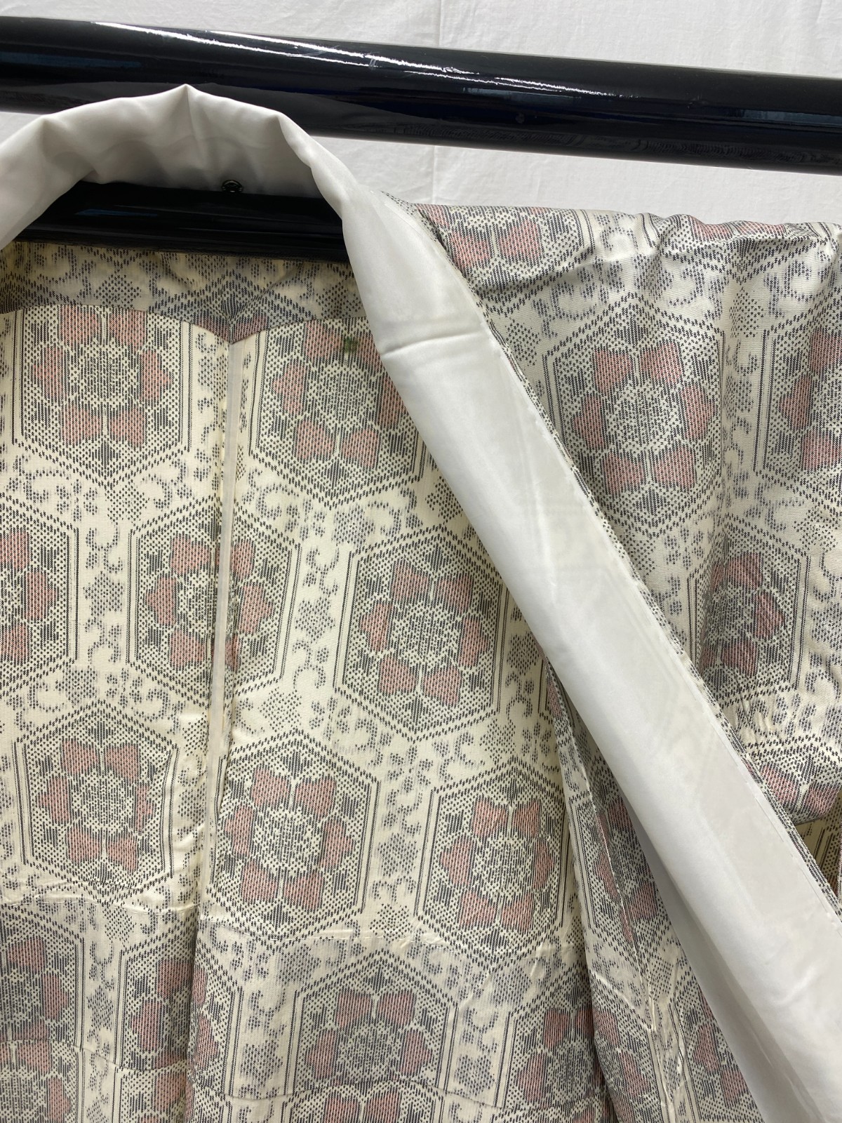 как выглядит Japanese Vintage Kimono Silk White No Lining Oshima Traditional Length 62in фото