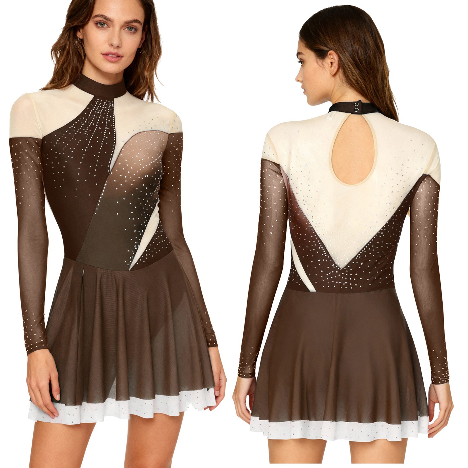 Women Dancewear Roller Costumes Briefs Dresses Cut Dress Skate Patchwork Sports