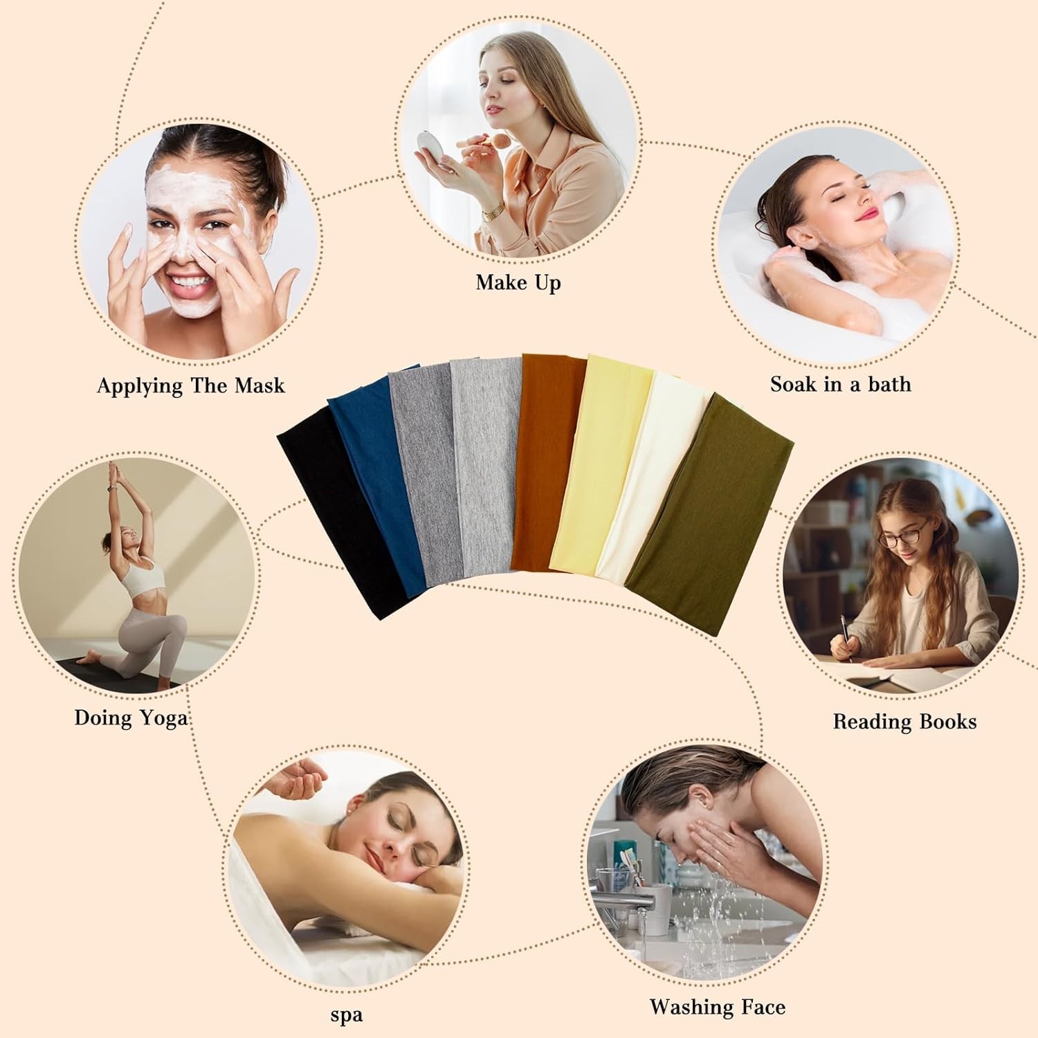 Yeshan Wide Headbands For Women Stretch Boho Head Bands Large Turban No8 8PCS