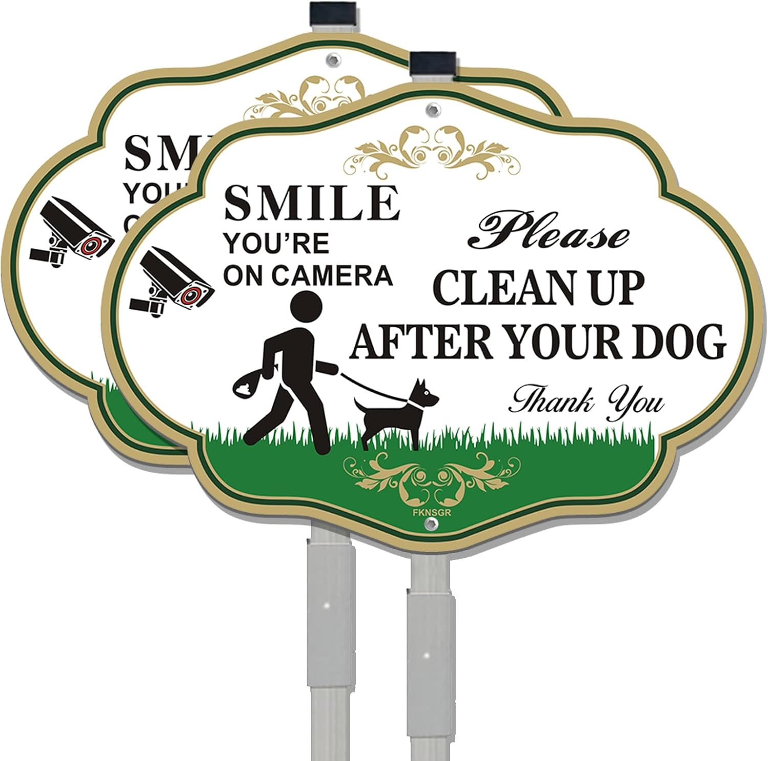Clean up after Your Dog Sign with Stake -2 Pack, 10 X 14 Inches Rust Free Alumin