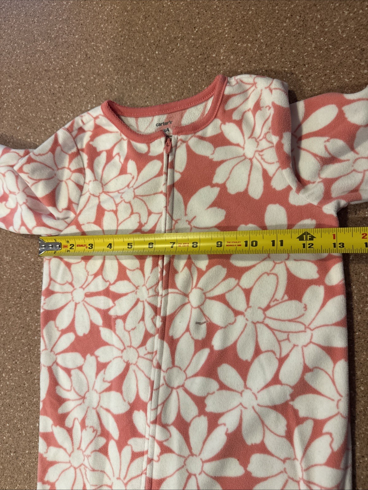 как выглядит Carters Pajama PJs Fleece Footed Zip Pink White Floral Flowers Girls Size 4 фото