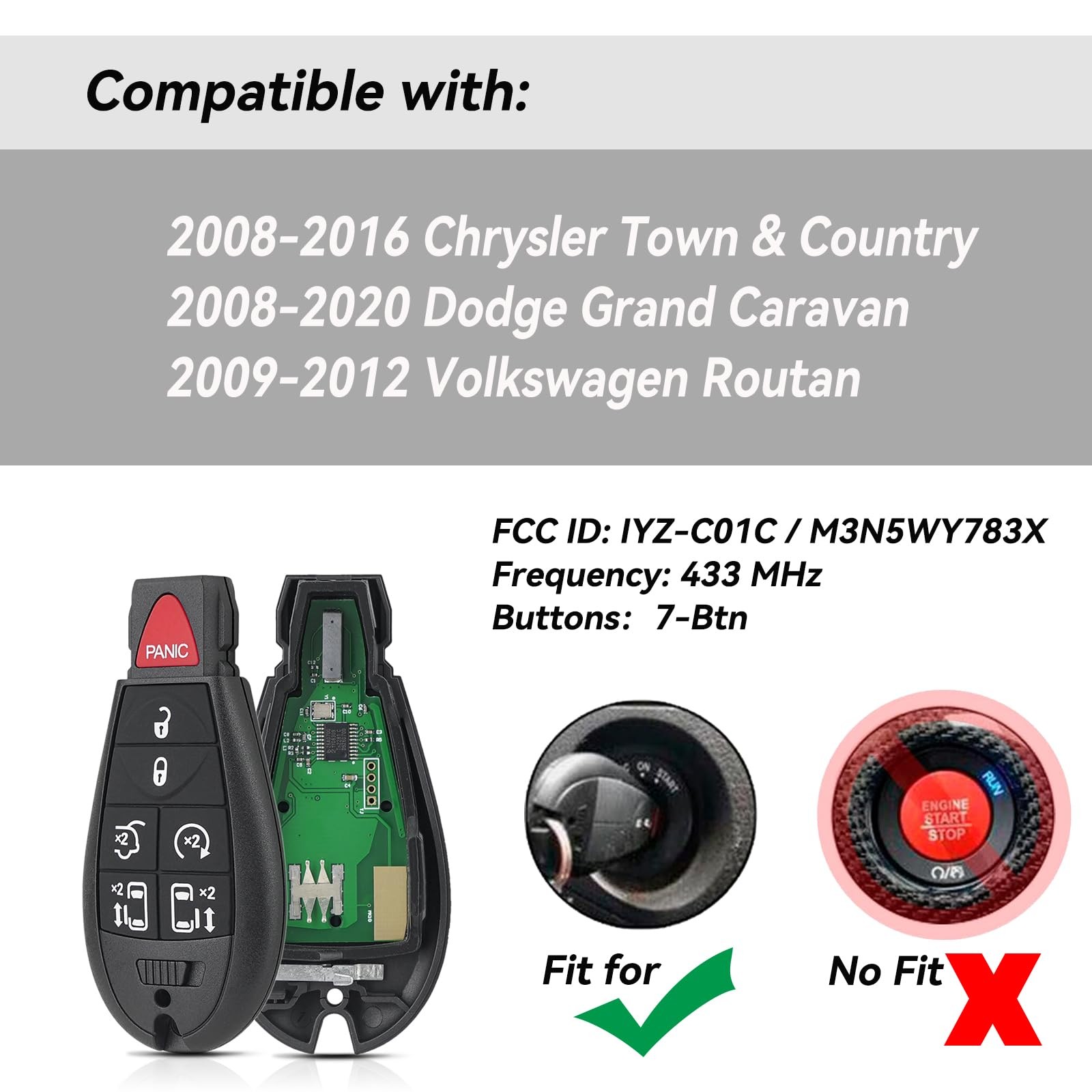 GZXNKEY 2PCS Key Fob Replacement for Dodge Grand Caravan 2008 2009 2010 2011 ...
