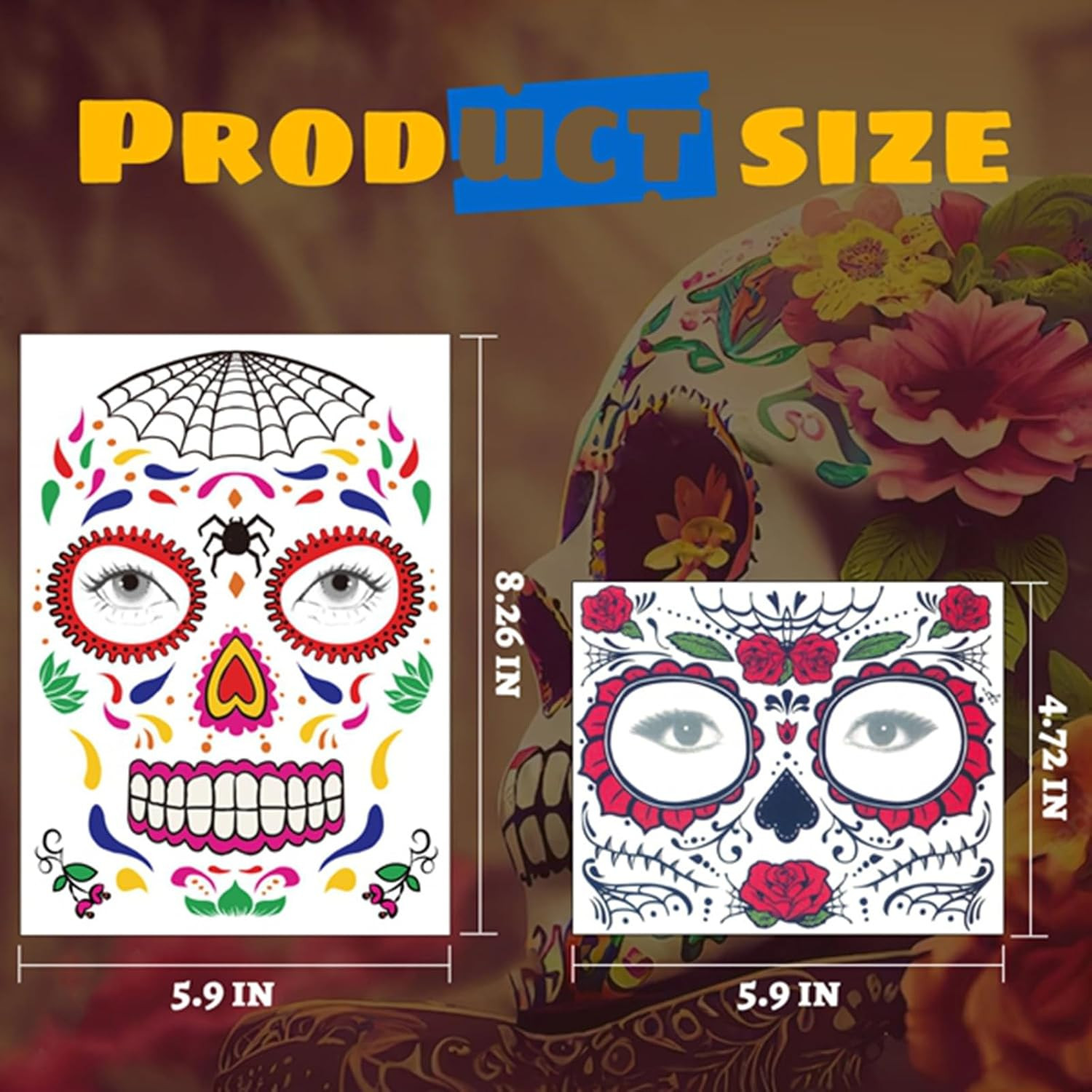 Halloween Temporary Face Tattoos Makeup Kit 13 Pack , Day of the Dead Sugar Sku