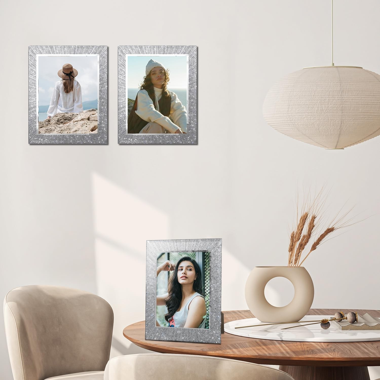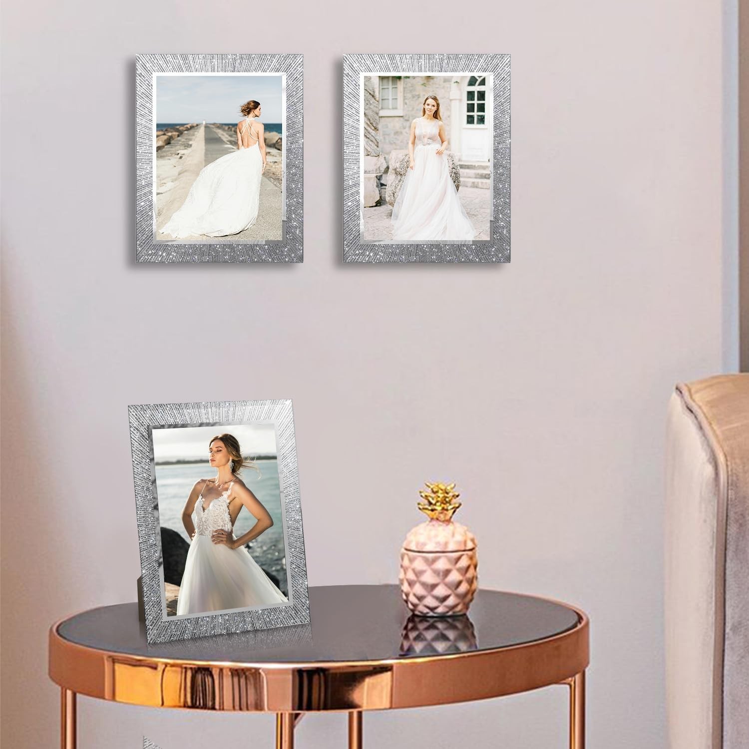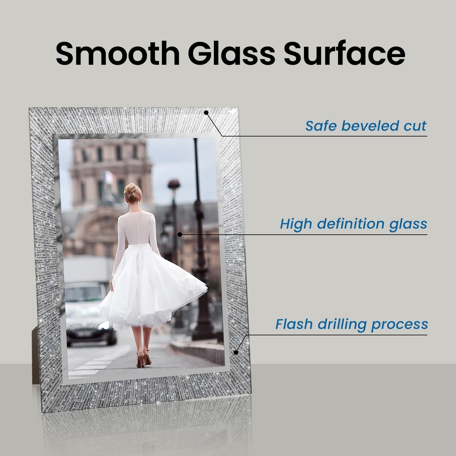 8x10 Picture Frame Glass 2 Pack, Sparkly Glitter Photo Frame 8 x 10 Mirror Cr...