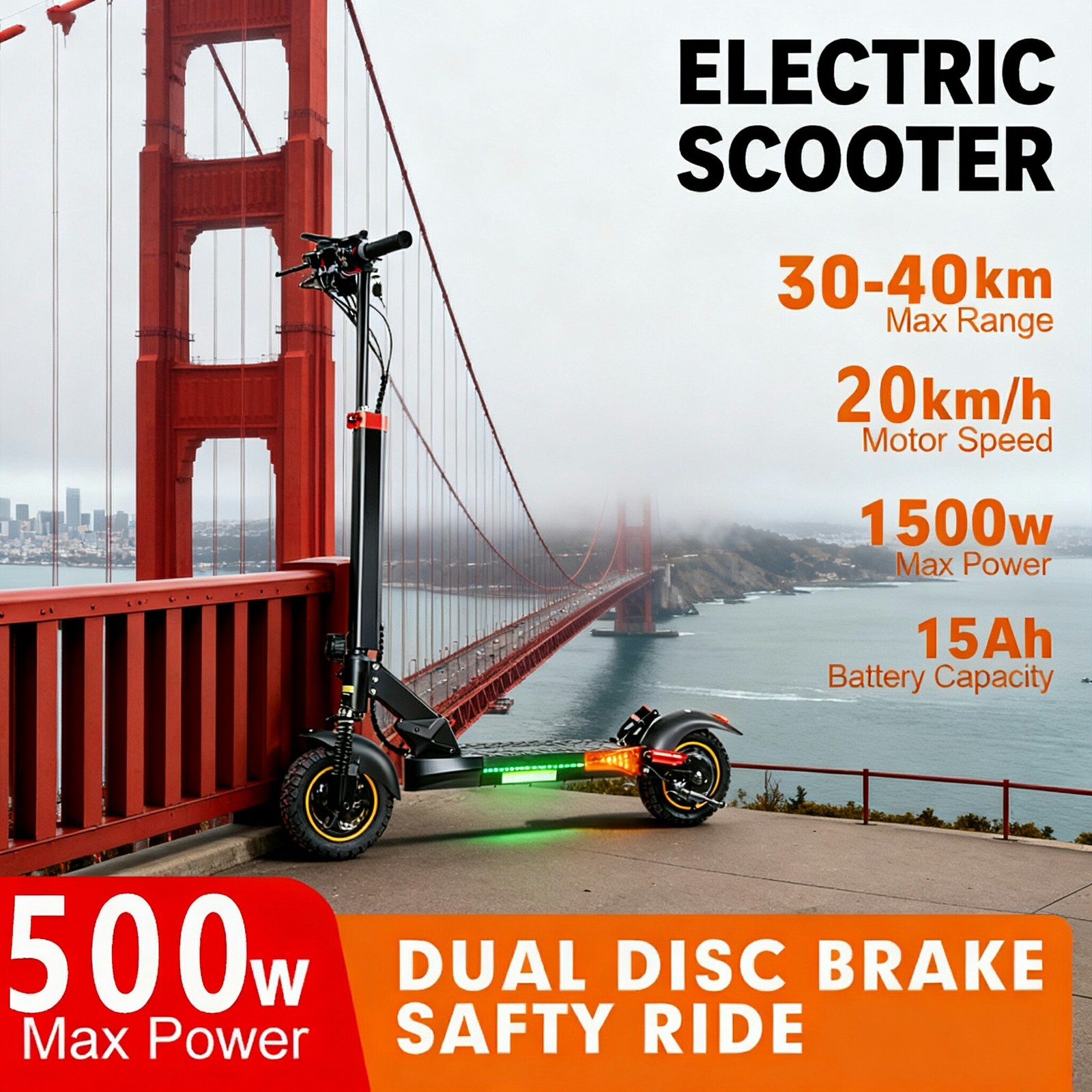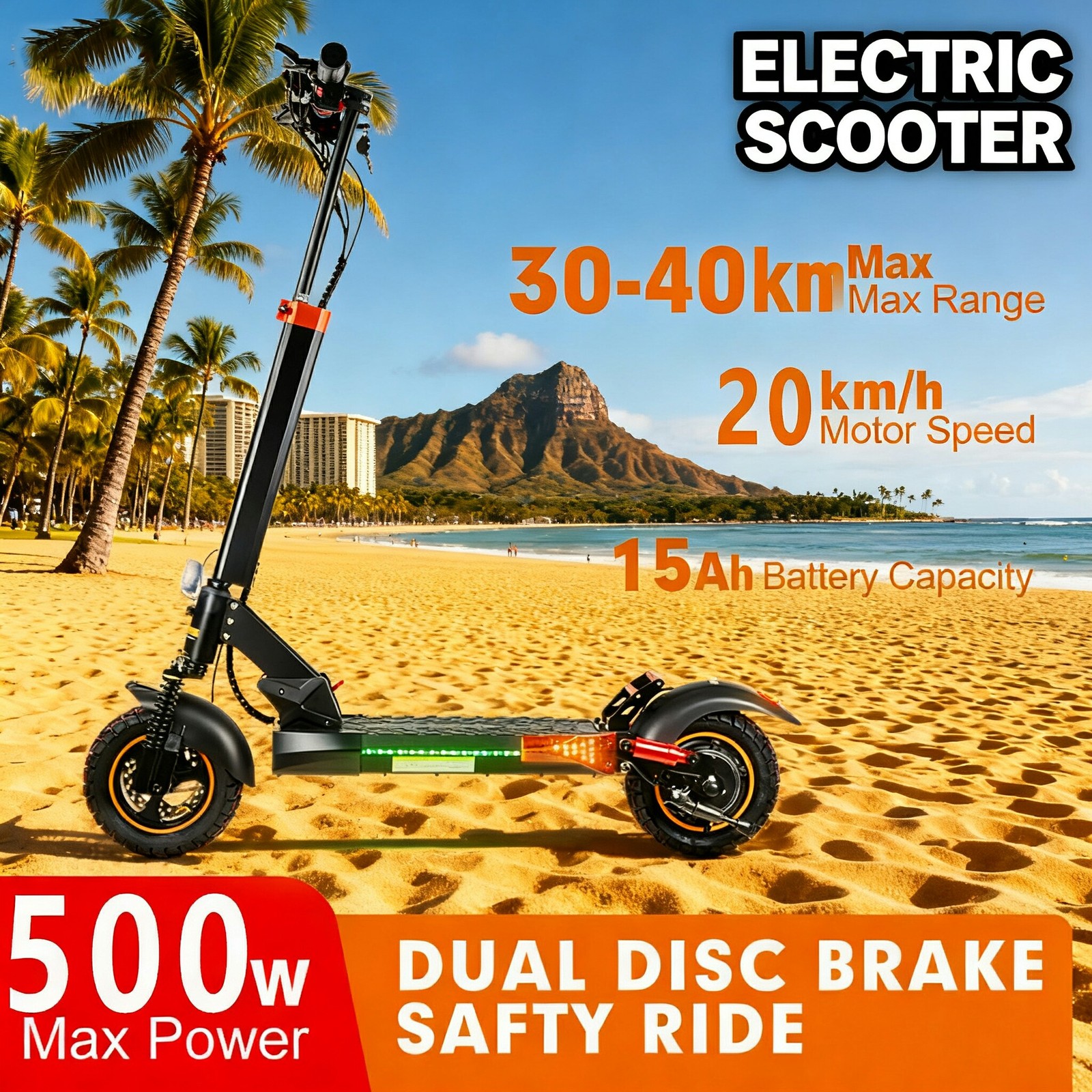 70-Mile Range Adult Electric Commuter Scooter: Dual Suspension Brakes, 28 mph