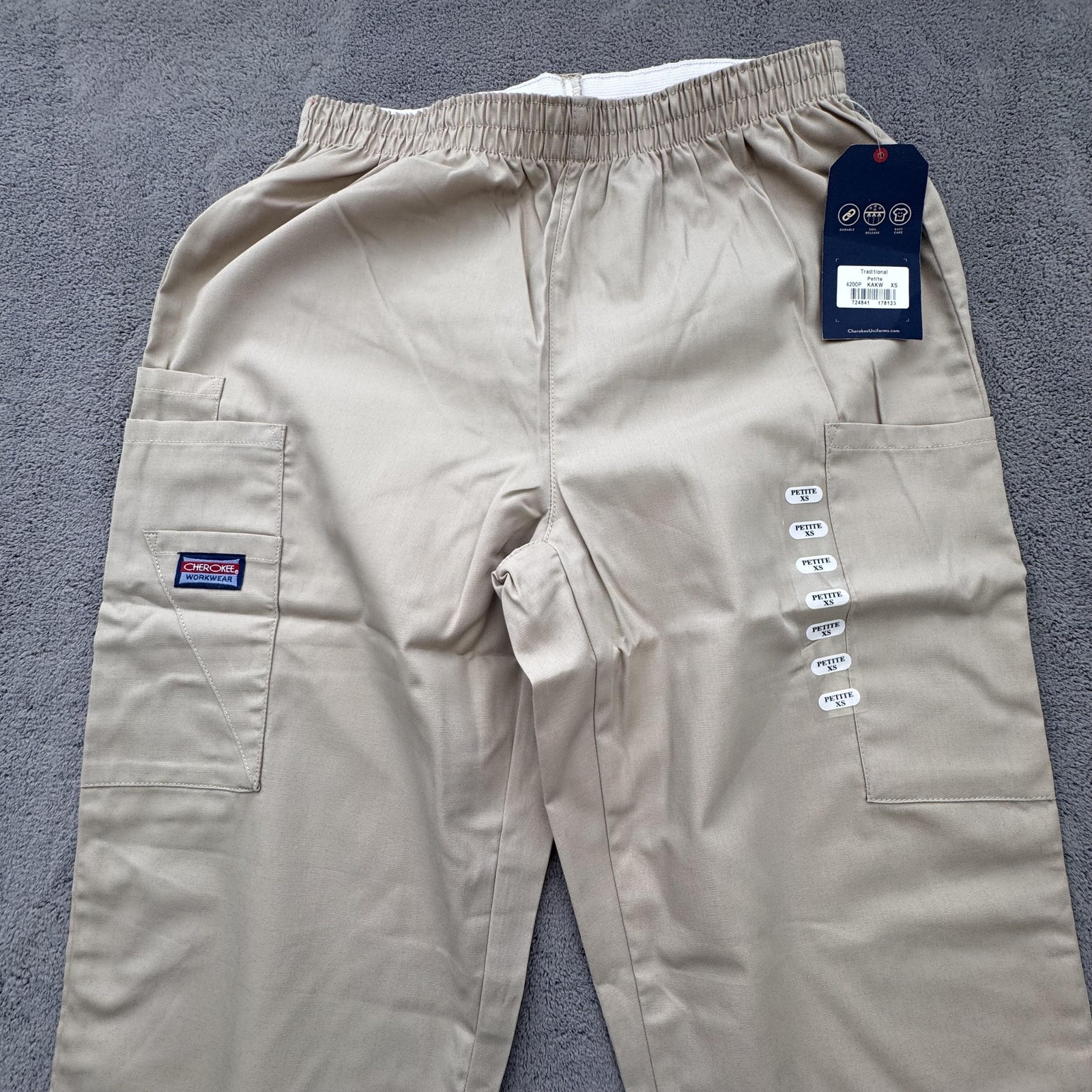 Cherokee Workwear Pants Womens XS Petite Khaki 4200P Scrub Cargo Elastic Medical
