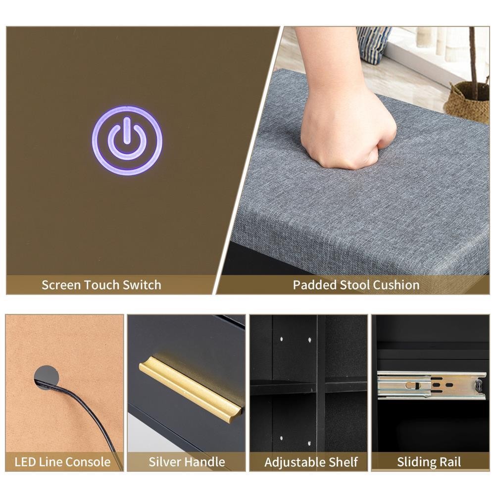 Vanity Set with LED Lights Mirror Makeup Dressing Table Dresser Desk w/ Stool