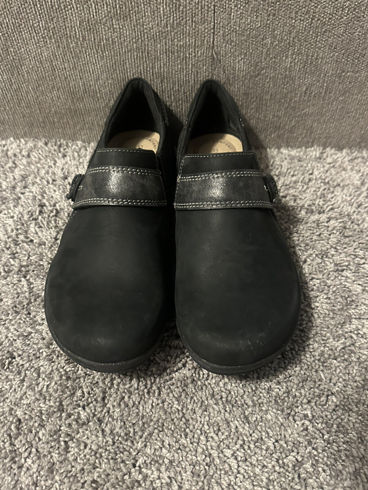 как выглядит Clark s Women s Black Leather Loafers Size 6 фото
