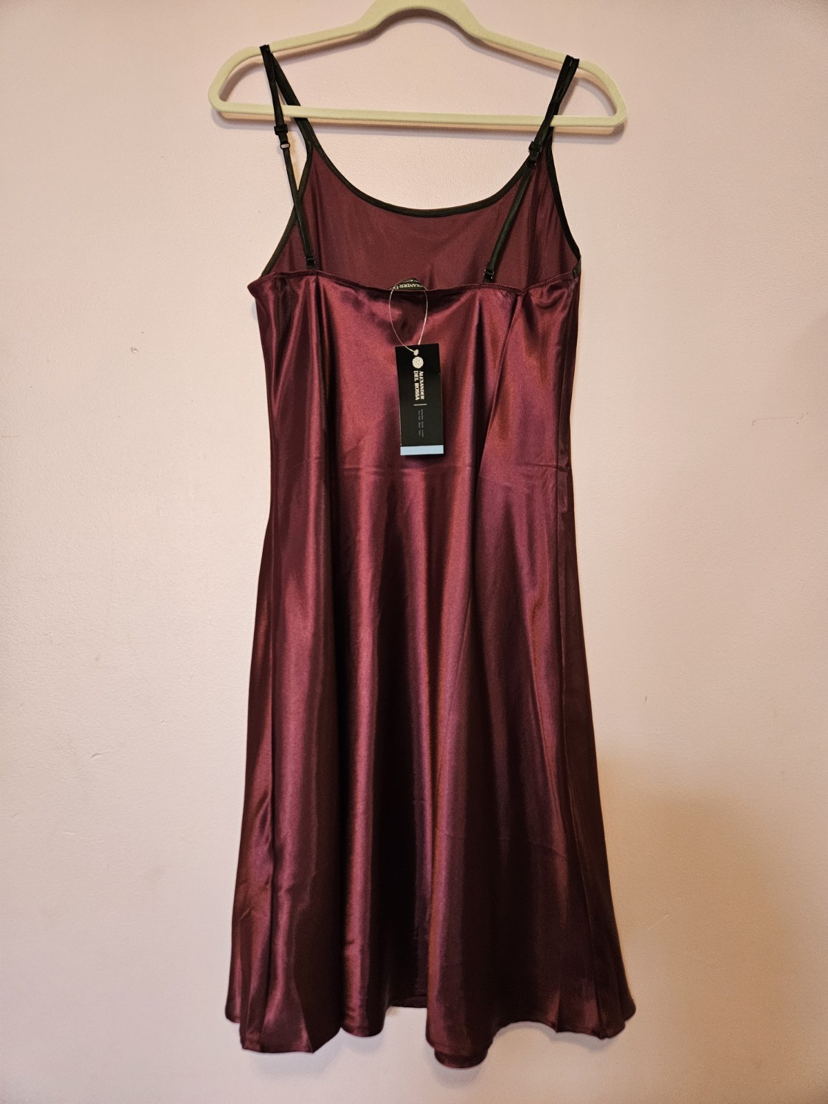 как выглядит Alexander Del Rossa Wine Burgundy Satin Slip Dress Medium Midi фото