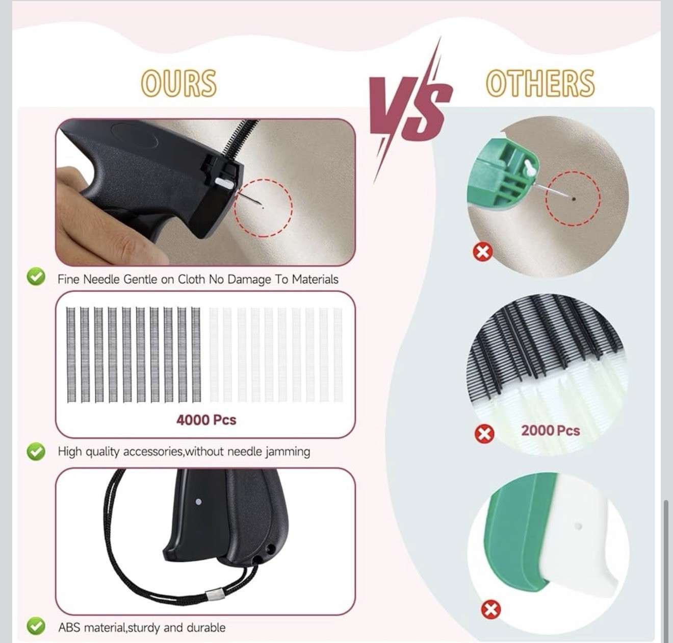 Mini Tagging Gun for Clothing Repairs with 6 Needles 5000 Micro Fasteners