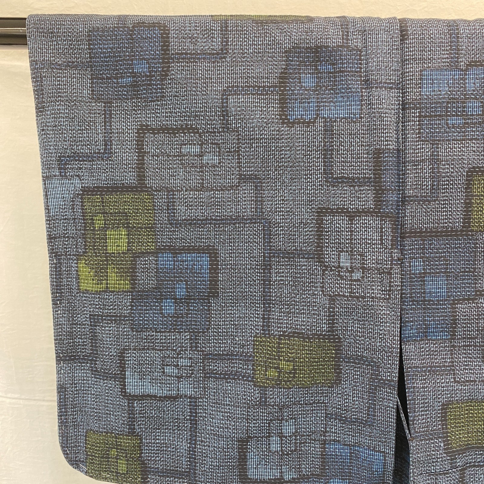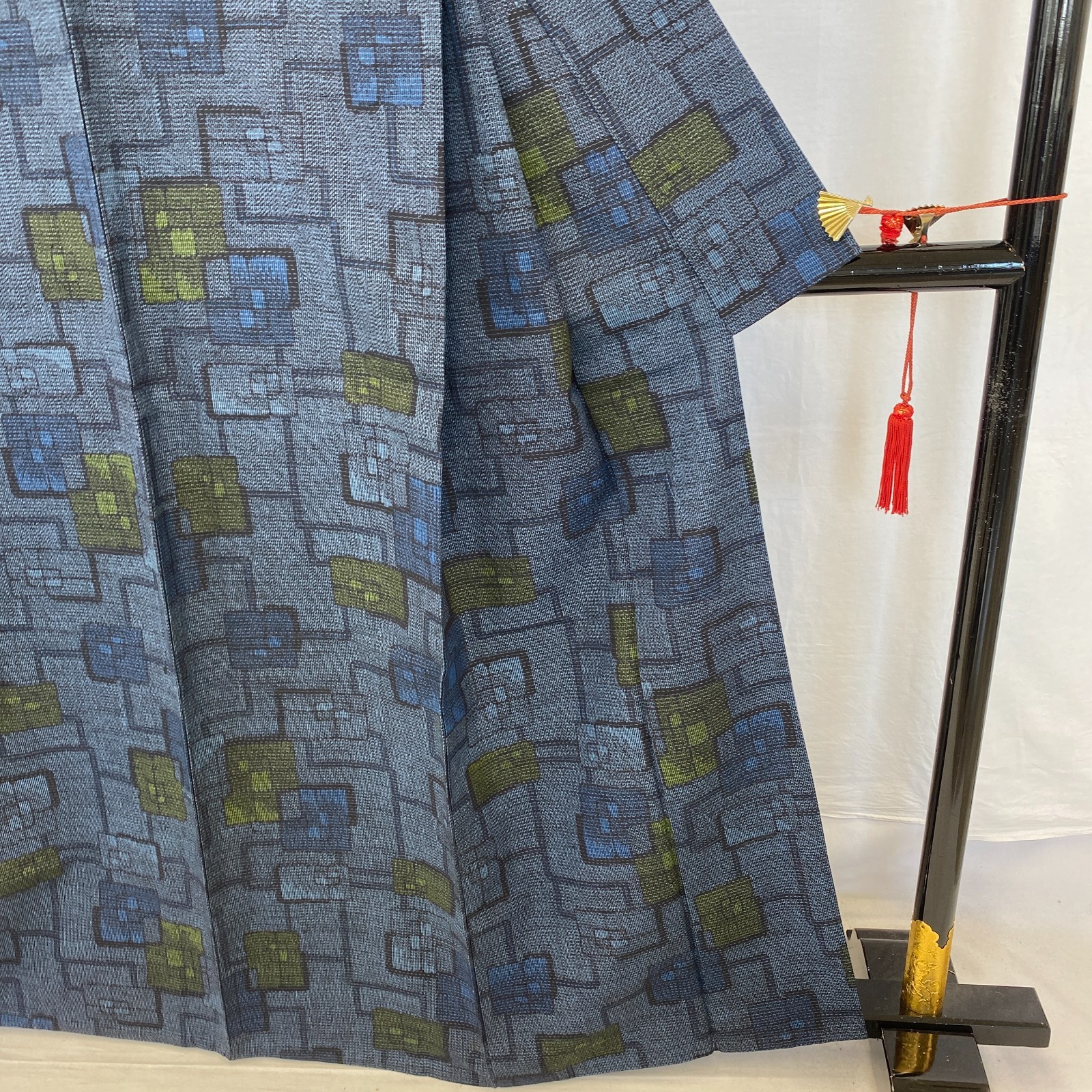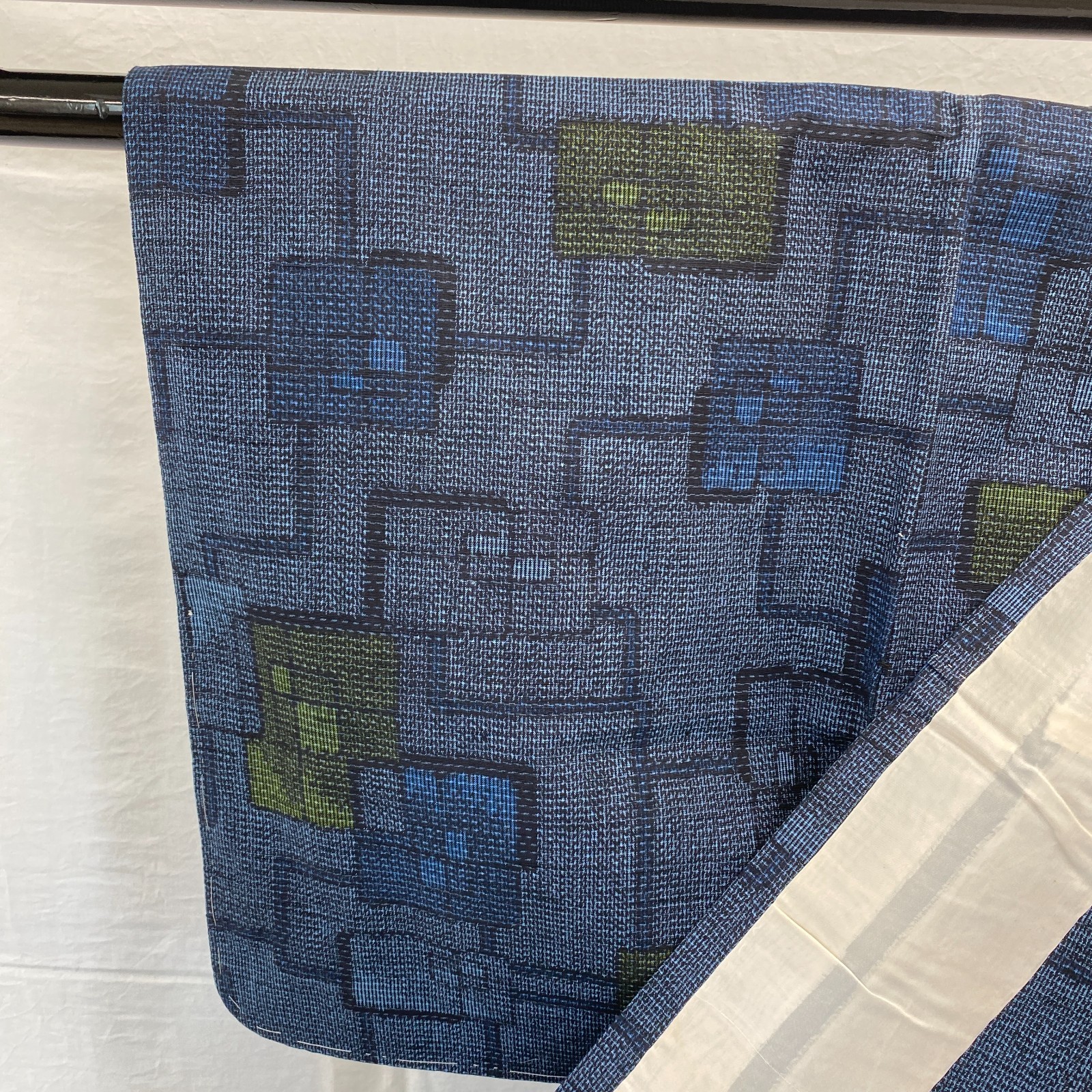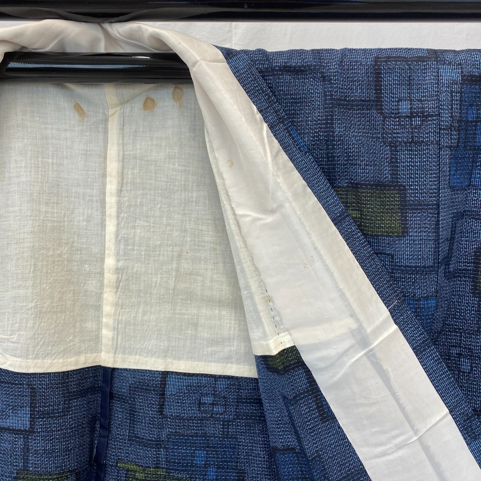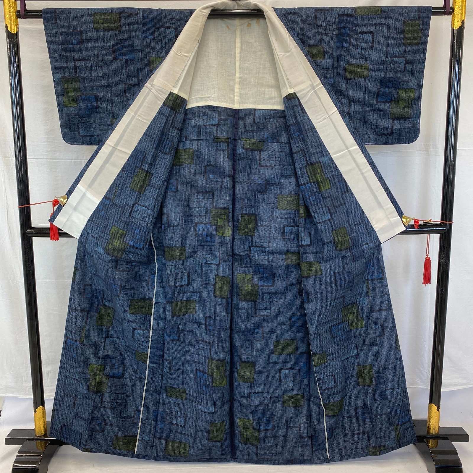 Japanese Vintage Kimono Silk Navy No Lining Tumugi Drit Traditional Length 62 in
