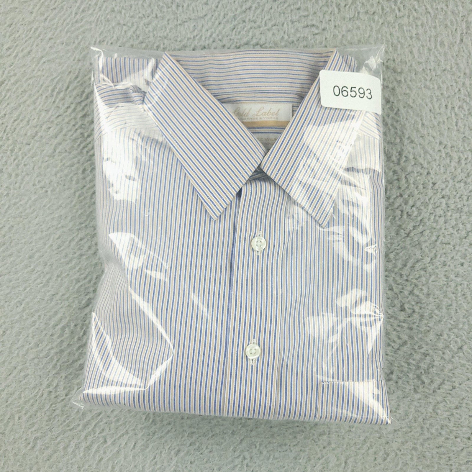 Roundtree Yorke Gold Label Shirt Mens 15.5 33 Blue Stripe Non Iron Cotton