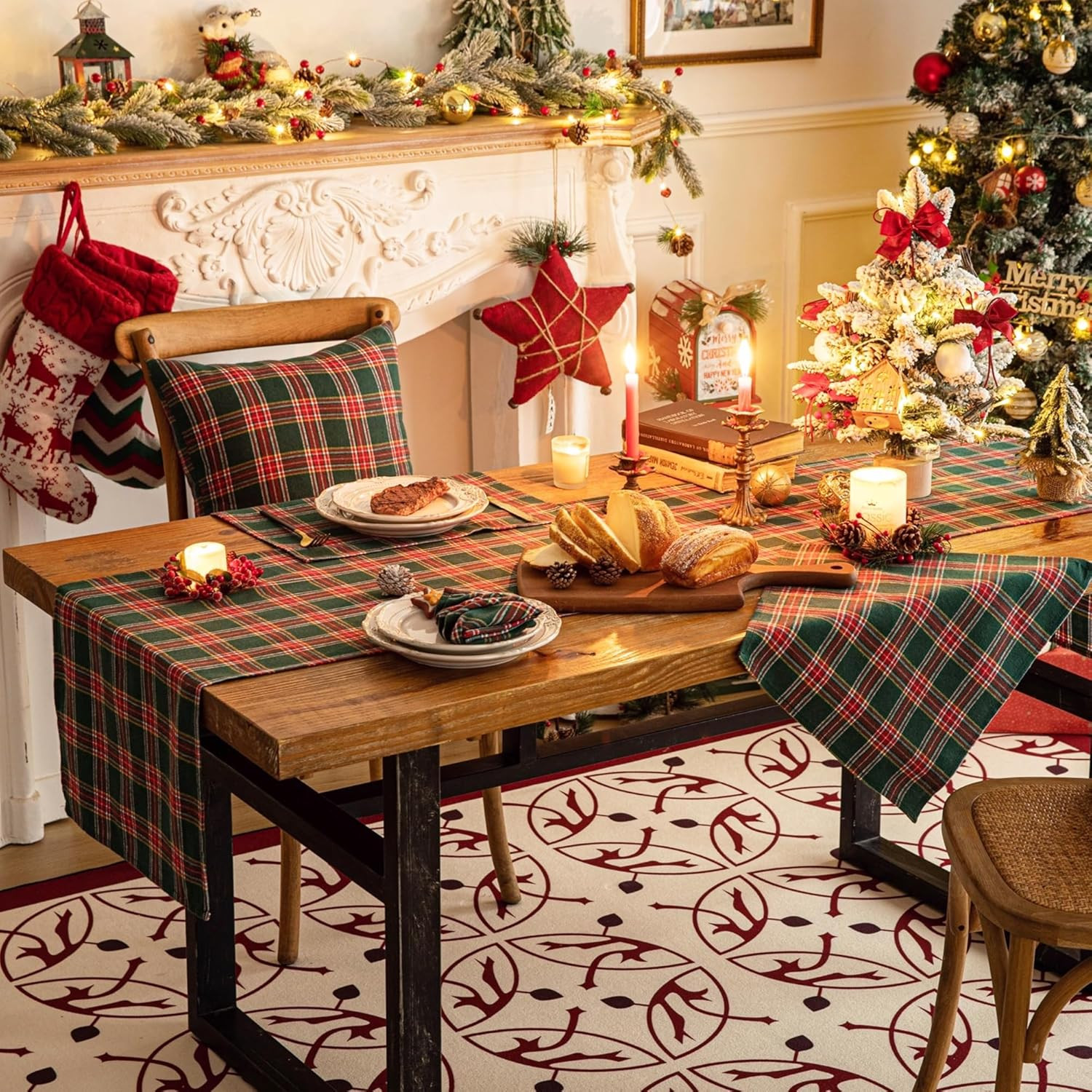 Green Red Plaid Christmas Table, Winter Holiday Table Runners 72 Inches Long