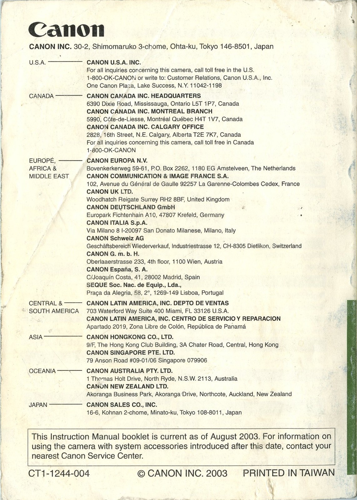Original Manual for Canon EOS Digital Rebel/300D Camera