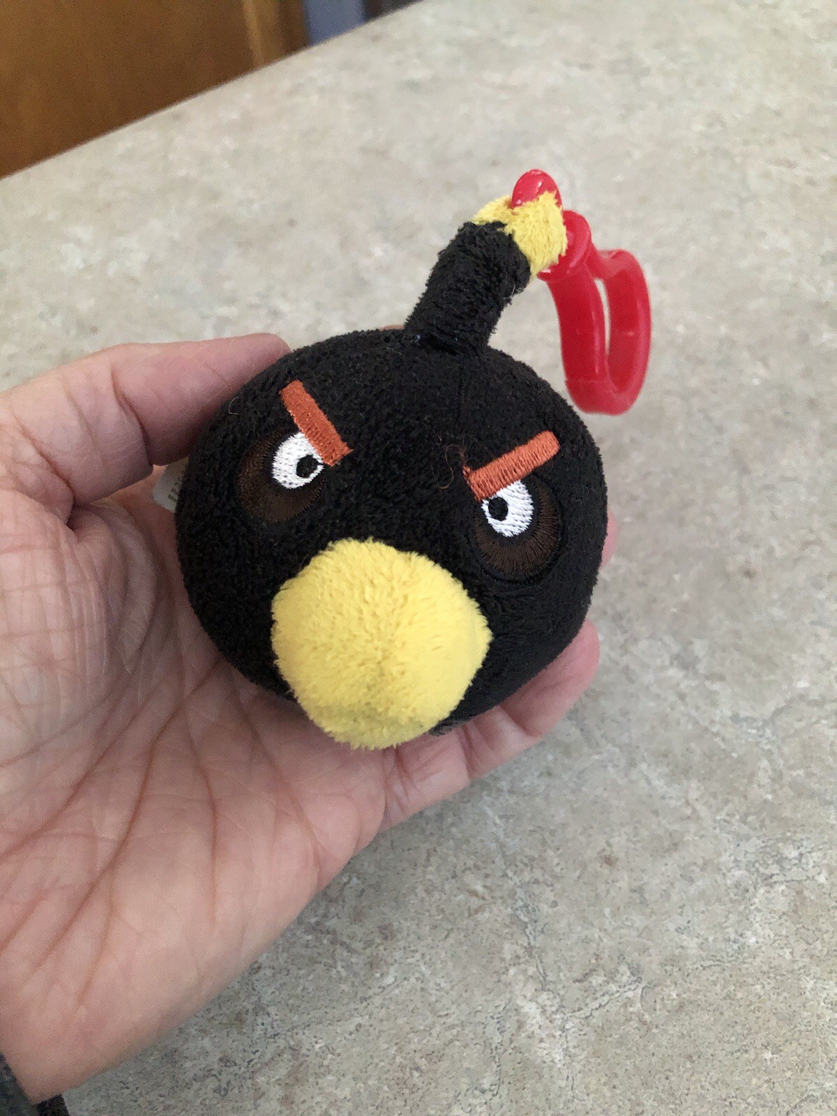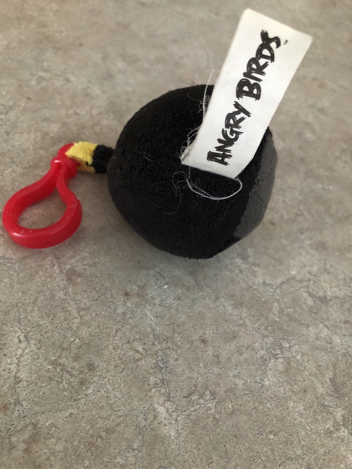 Angry Birds Black Bird Bomb Plush 3 Backpack Clip GUC - shows minor wear